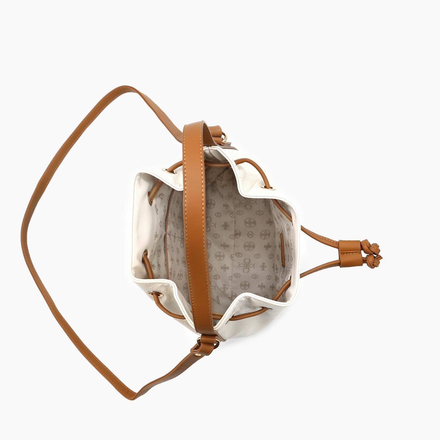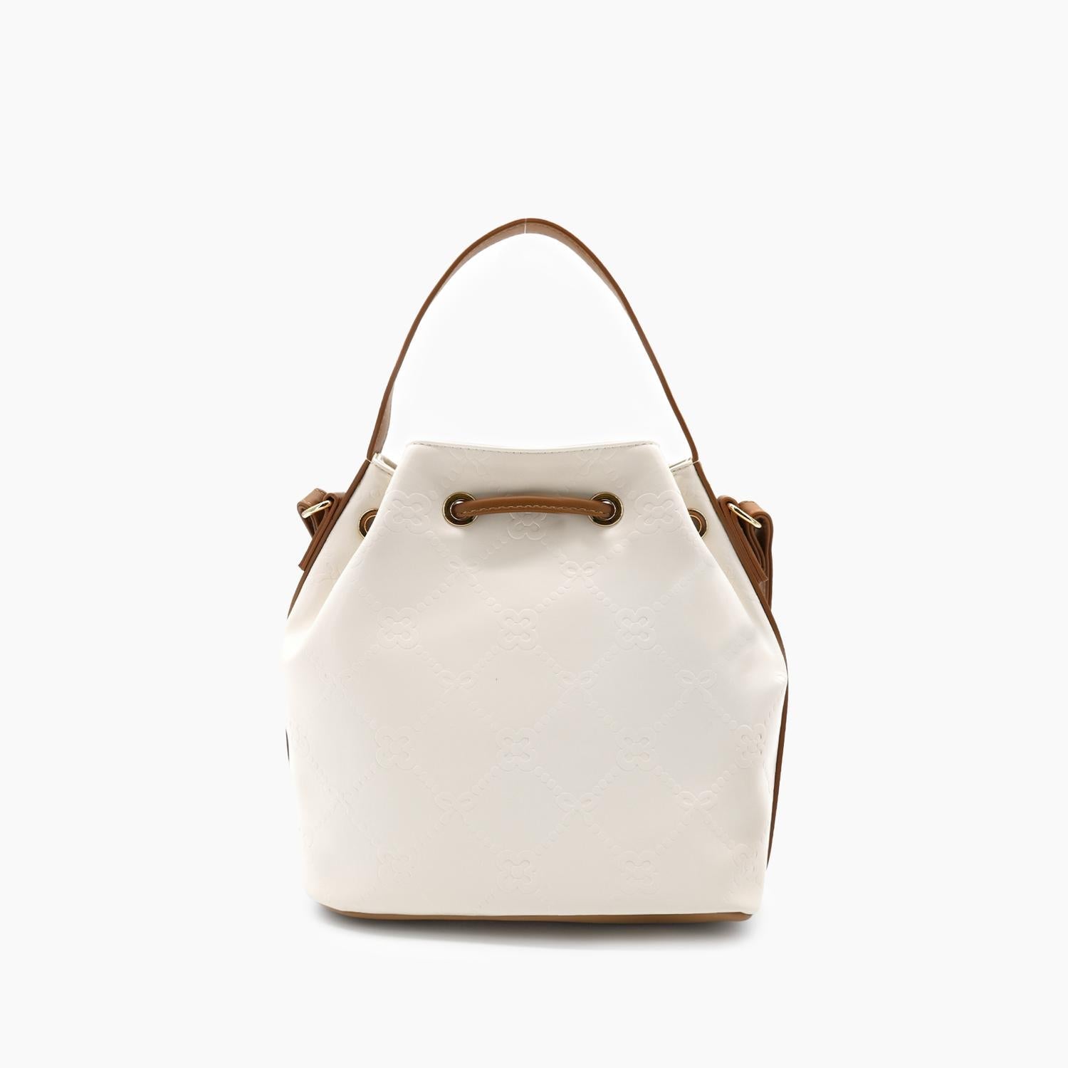 The crossbody bag is a trend that is here to stay and we especially love this style. Discover the Mirage Bucket Top Handle Crossbody Bag by Like Dreams in chic ivory, a versatile choice that adapts effortlessly to any occasion. Crafted from nylon, this stylish bag measures 11"W x 9.5"H x 4.75"D and features a 6" ring top handle and a 32" crossbody strap for easy carrying. The drawstring closure keeps your essentials safe, with a spacious main compartment, one inner wall zip pocket, and two inner slit pockets offering ample organization. Weighing in at just 14.07 oz, this bag is both practical and lightweight.