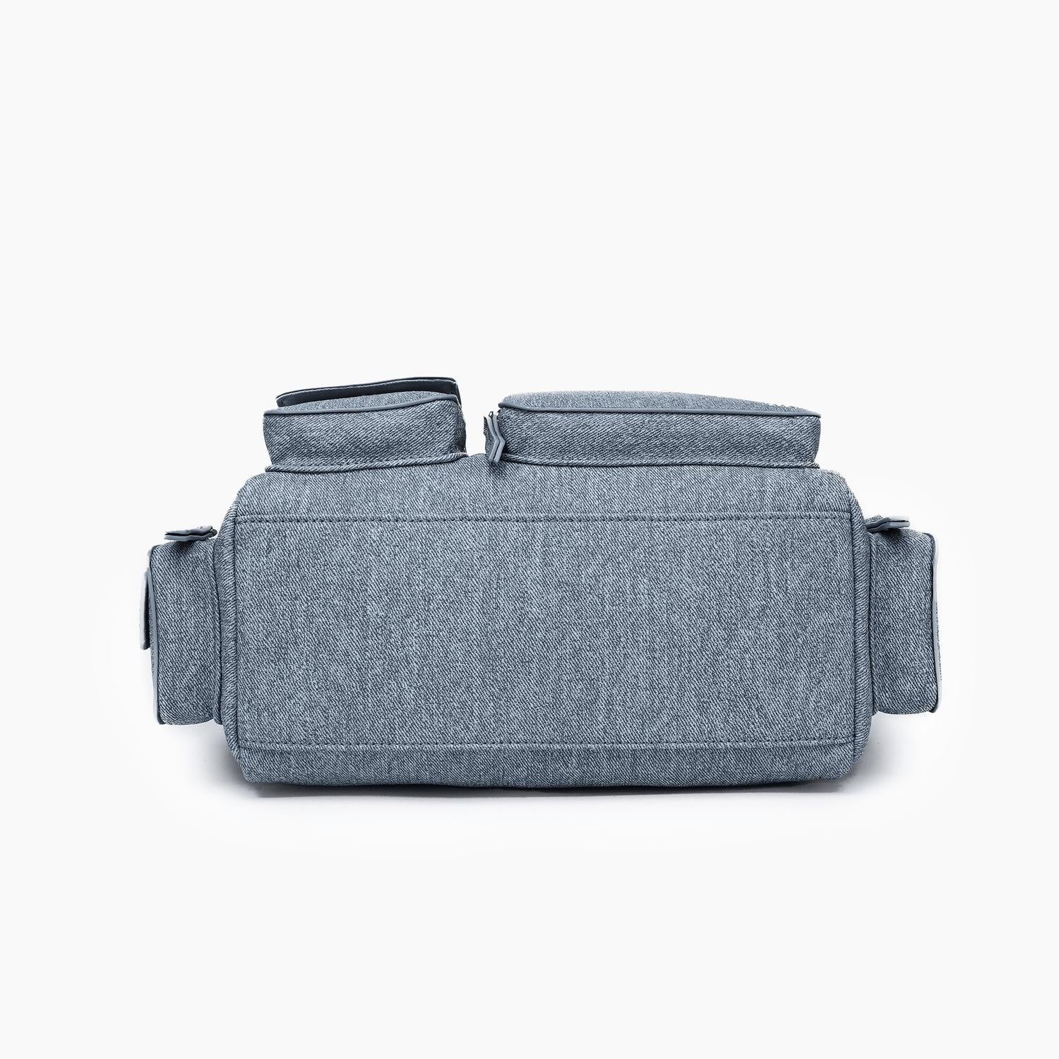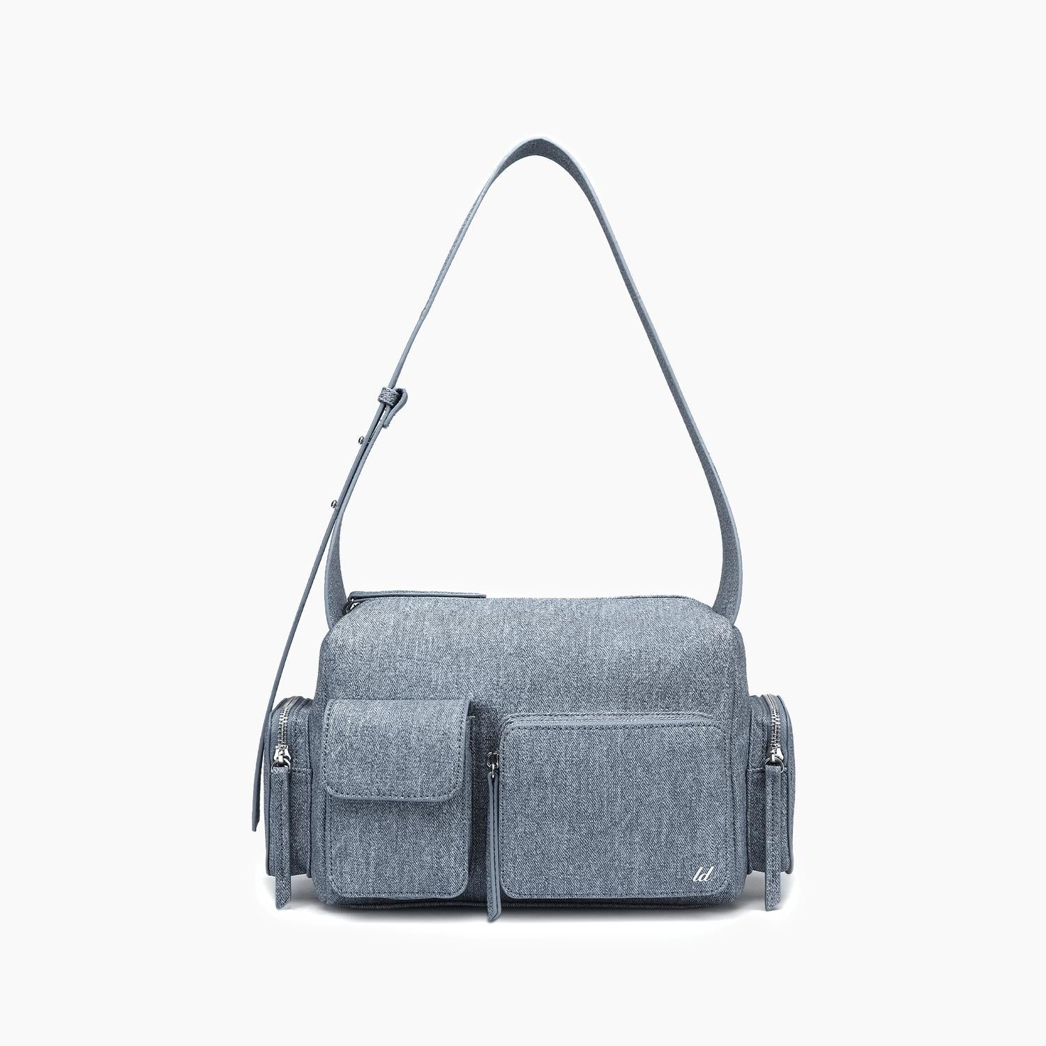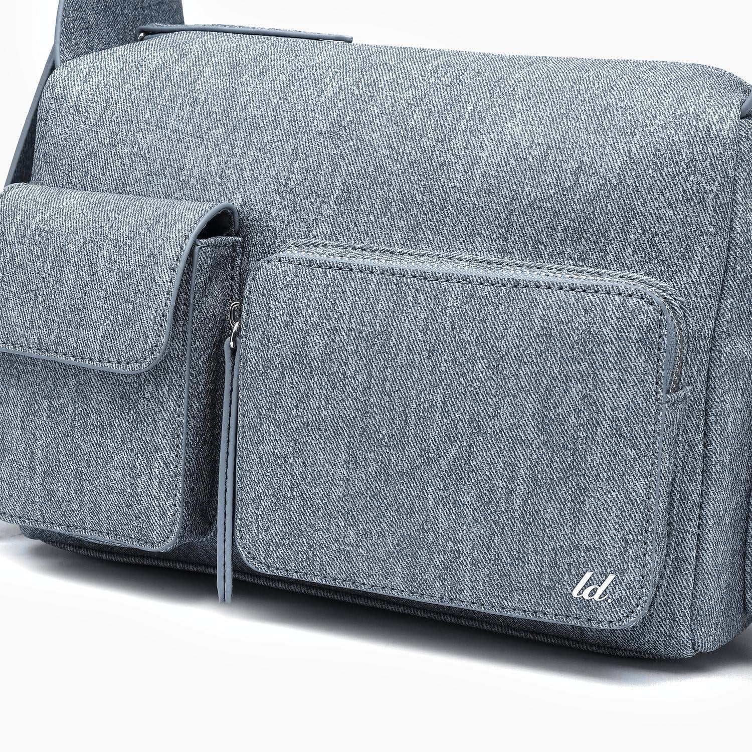 Meet the Women's Nomad Vegan Shoulder Bag by Like Dreams, a stylish accessory in a trendy denim-look finish. Crafted from 100% vegan leather, this bag combines a sleek design with functionality, featuring dimensions of 13"W x 8"H x 6.5"D and an adjustable 13" strap. Closure is secured with a zipper, ensuring your essentials are safely contained. Weighing just 15.31 oz, it's the ideal lightweight companion for any journey.
