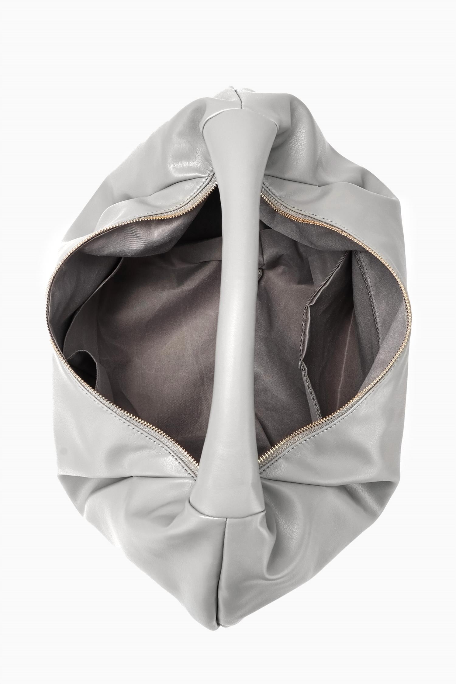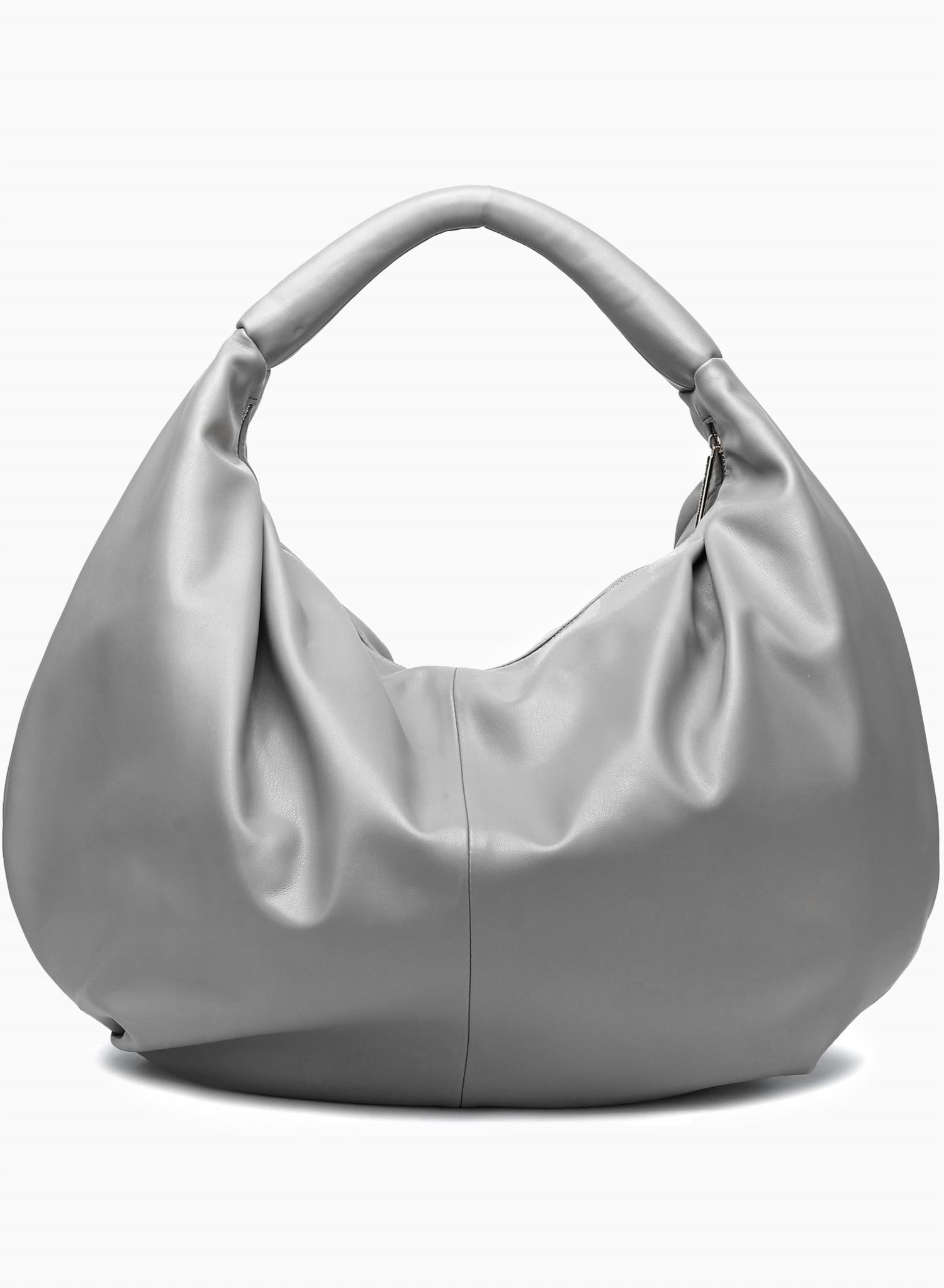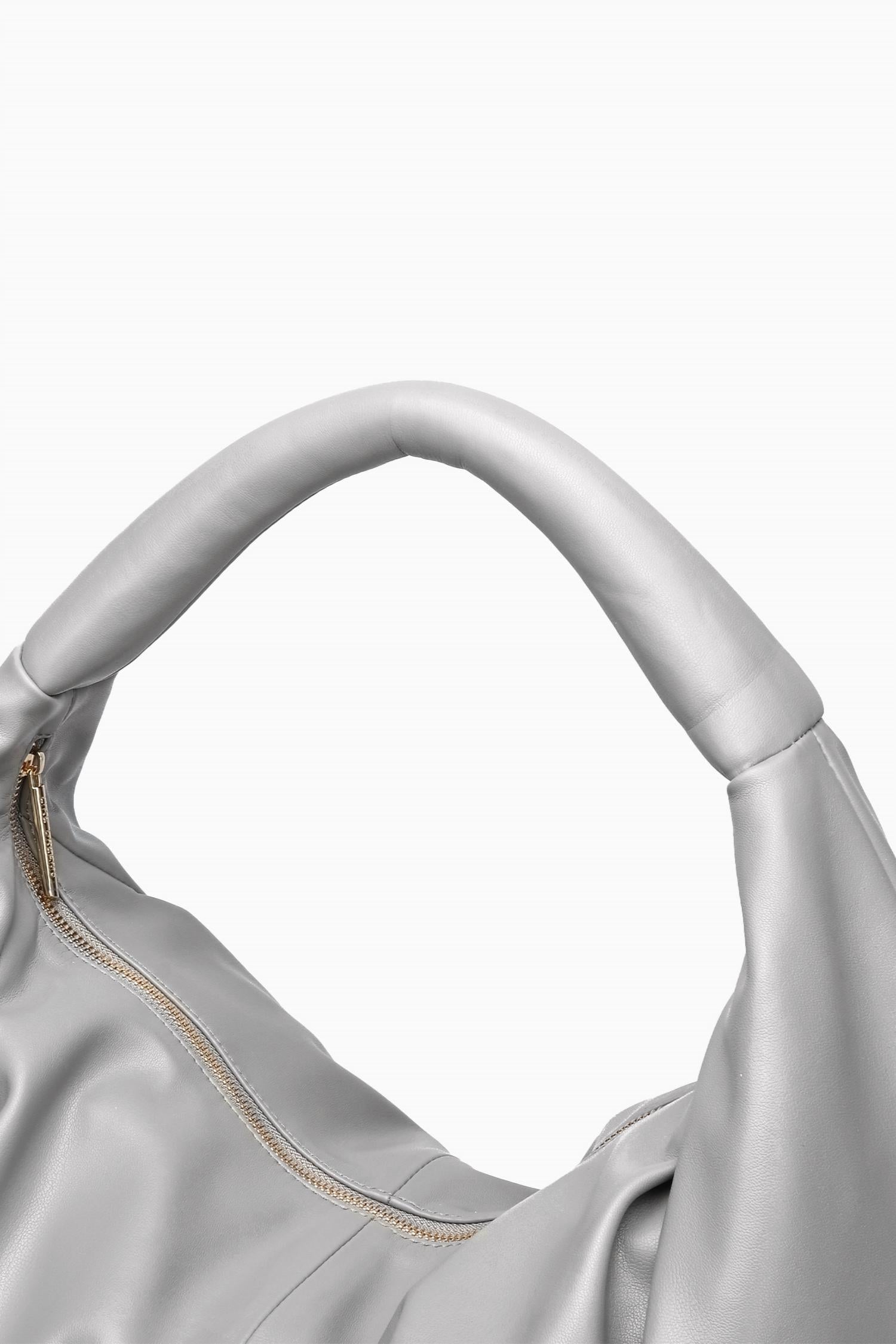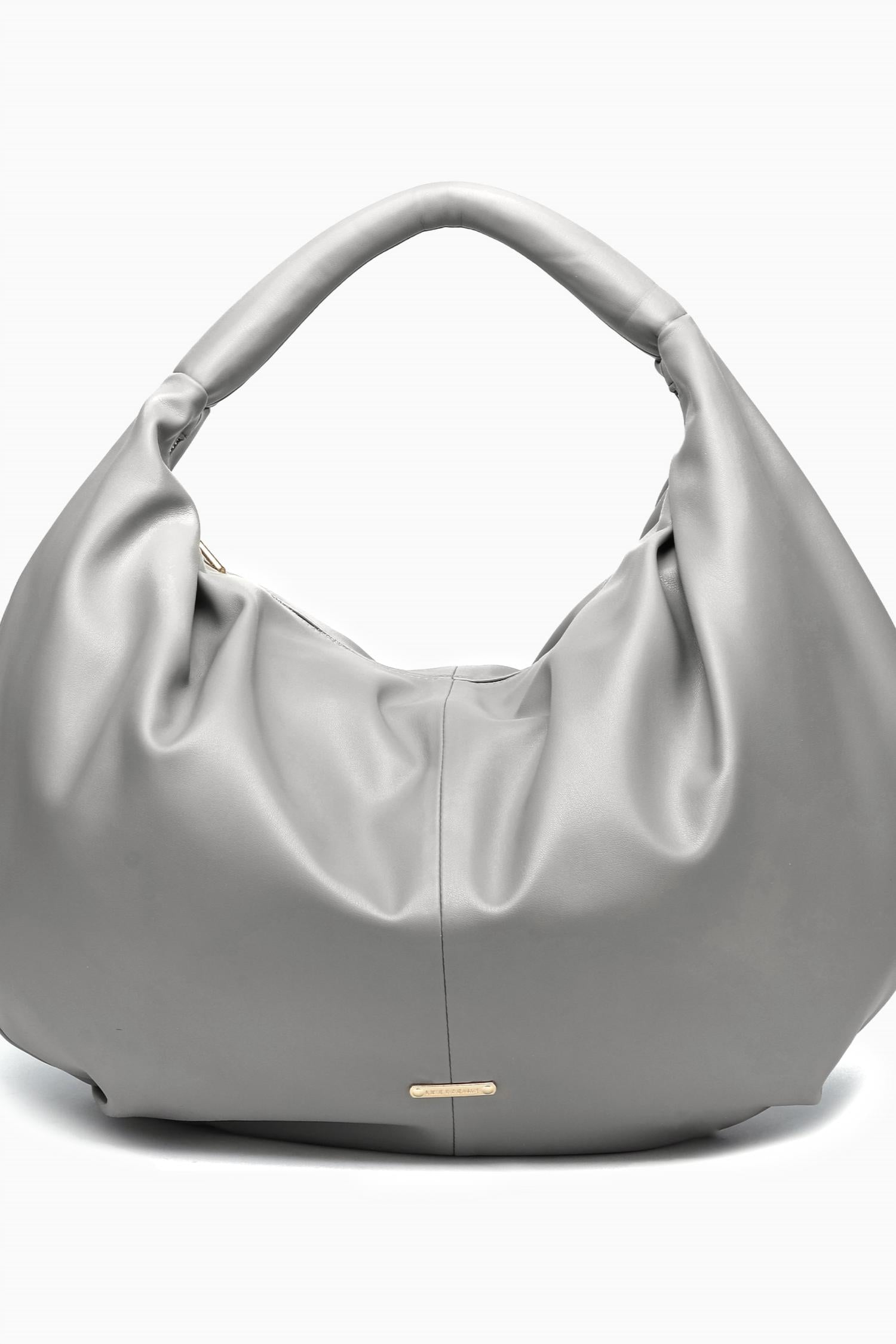 You can never have too many handbags and this hobo bag is no exception. Embrace effortless style with the Wanderlust Tote Scrunchie Hobo Bag by Like Dreams, crafted in smooth vegan leather that signifies modern sophistication. This oversized gray tote features a zipper closure and soft shoulder cushioning, making it an ideal choice for both a day at the office or a chic brunch outing. With dimensions of 18"W x 14"H x 7"D, this slouchy bag offers ample space and practicality, including one inner zipper pocket and two additional inner pockets for organized storage. Flaunt a strap height of 11" and redefine your accessory collection with this must-have addition.