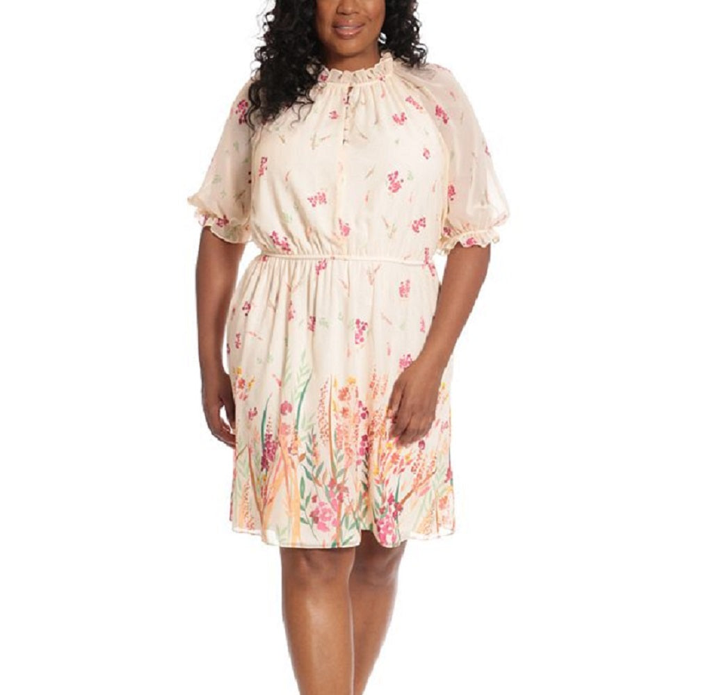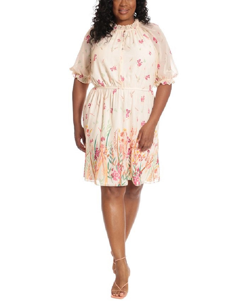 London Times gives this plus size dress a cinched waist for added shape and a chiffon finish for an airy feel