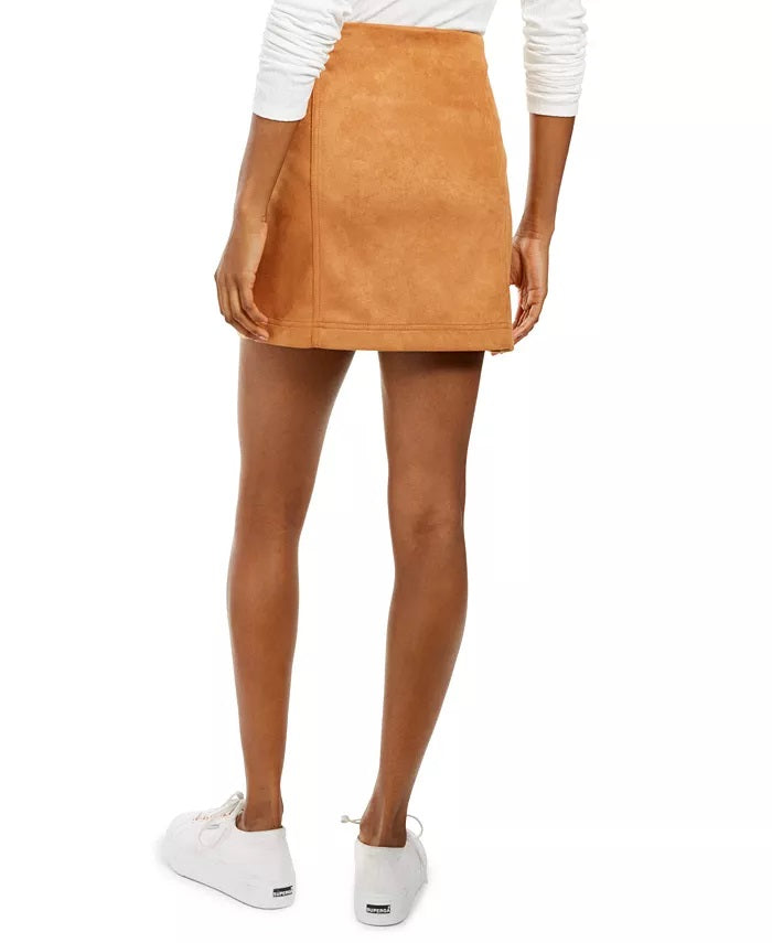 Love Fire Juniors' Faux-Suede Zipper Mini Skirt Brown Size X-Large