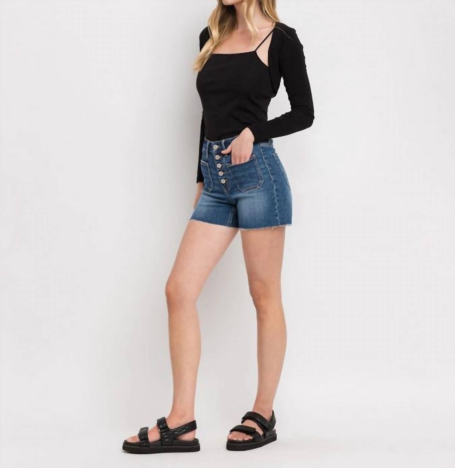 Not only cute but extremely comfortable. The jean shorts you will be reaching for all season long. Introducing the High Rise Button Up Shorts by LOVERVET, designed to add a touch of fun to any summer outfit. Crafted from a cotton blend composed of 93% cotton, 5% polyester, and 2% spandex, these solid blue jean shorts boast a playful button closure. The inseam measures 4.25 inches, ensuring a flattering fit, complete with pockets for added convenience. Care: Machine wash and tumble dry for easy maintenance.