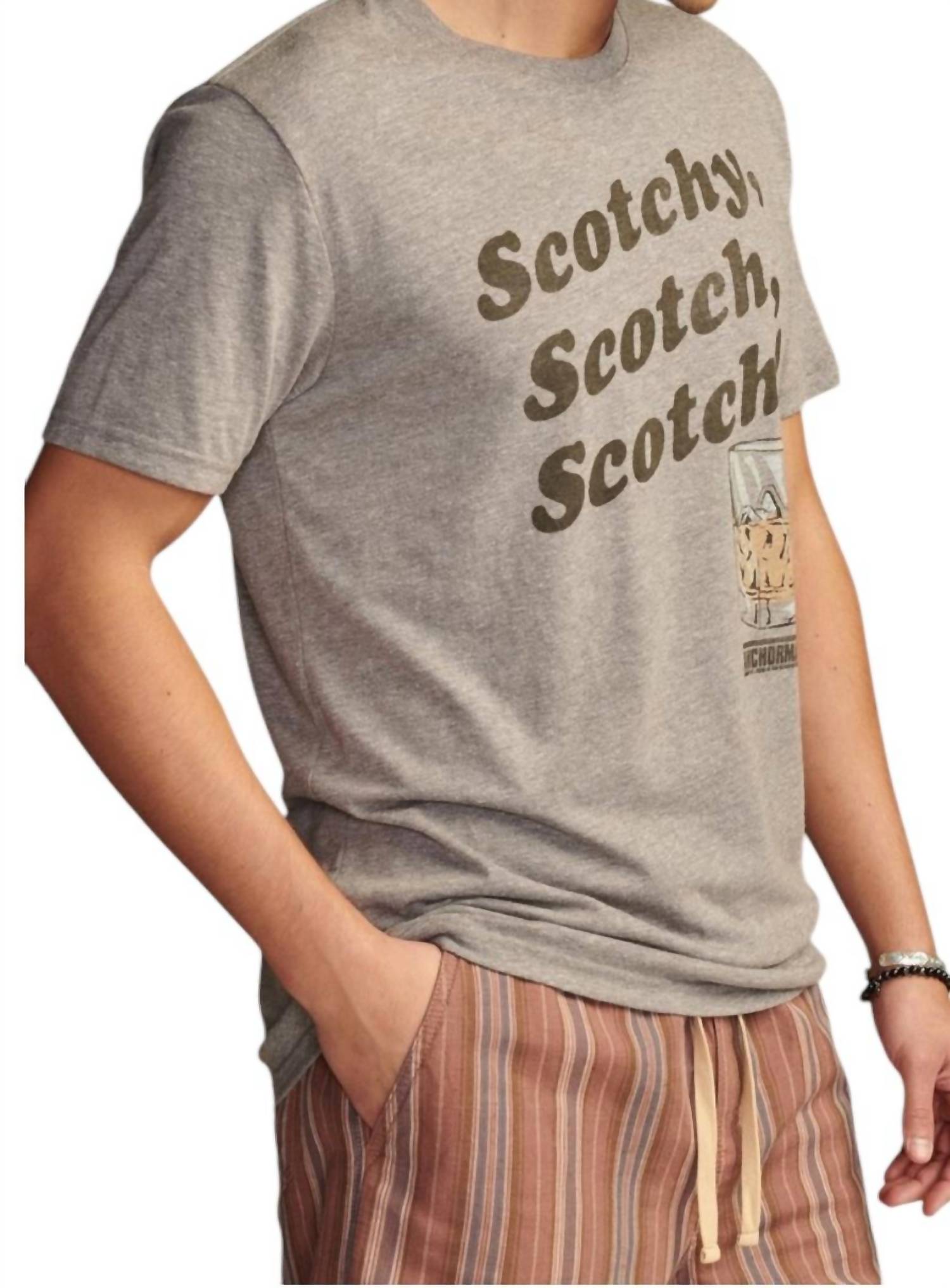 Introducing the Anchorman Scotch Tee by LUCKY BRAND, a must-have for your activewear collection. This men's tee is crafted from polyester, offering a comfortable and stylish fit with its classic crewneck and short sleeves. Showcasing a unique graphic pattern, this tee comes in a versatile grey color that's perfect for any casual occasion. Featuring a convenient pull-on closure, it's designed for easy wear and versatility.