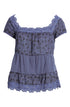 Lucky Brand Women's Floral Eyelet Top Blue Size -M