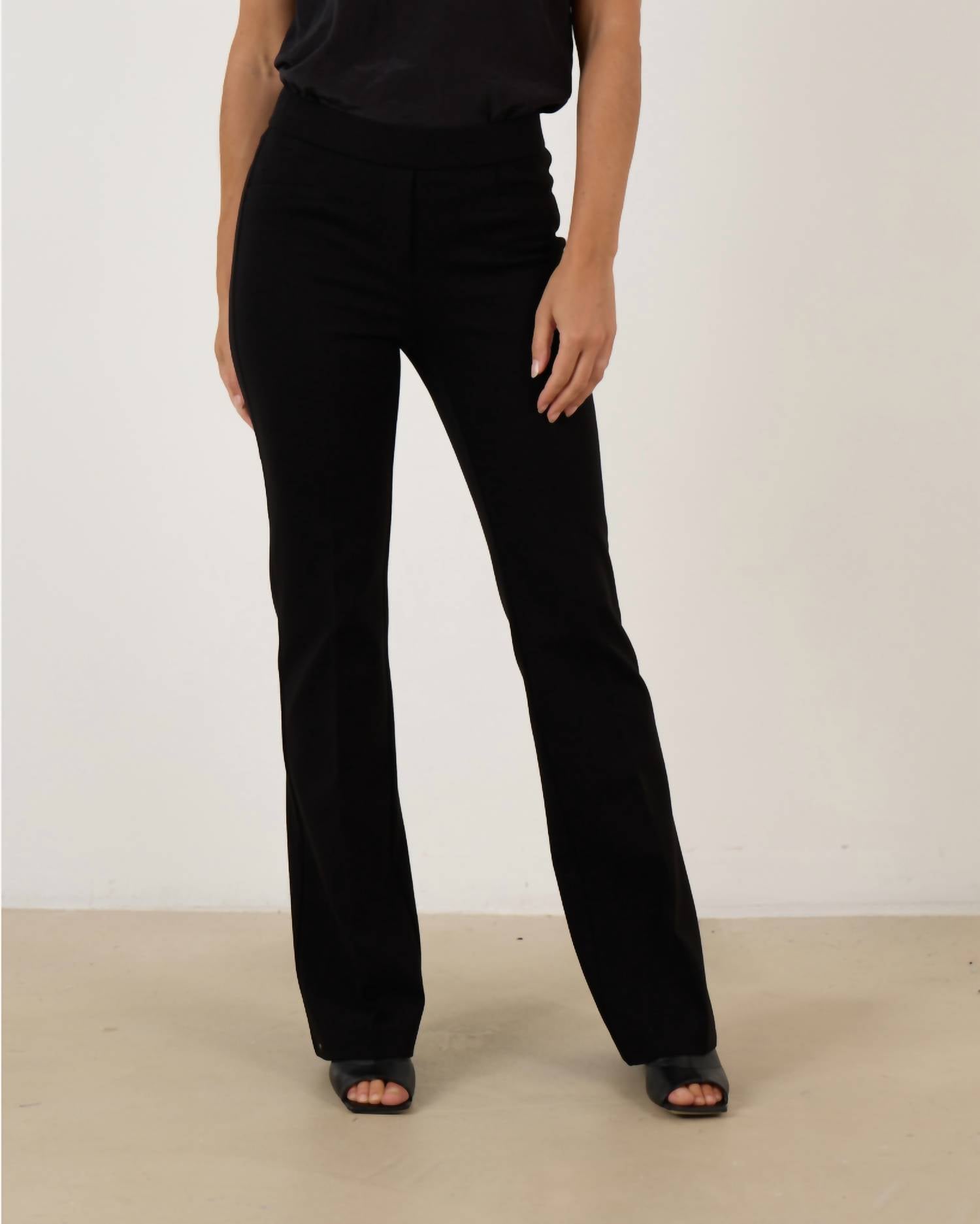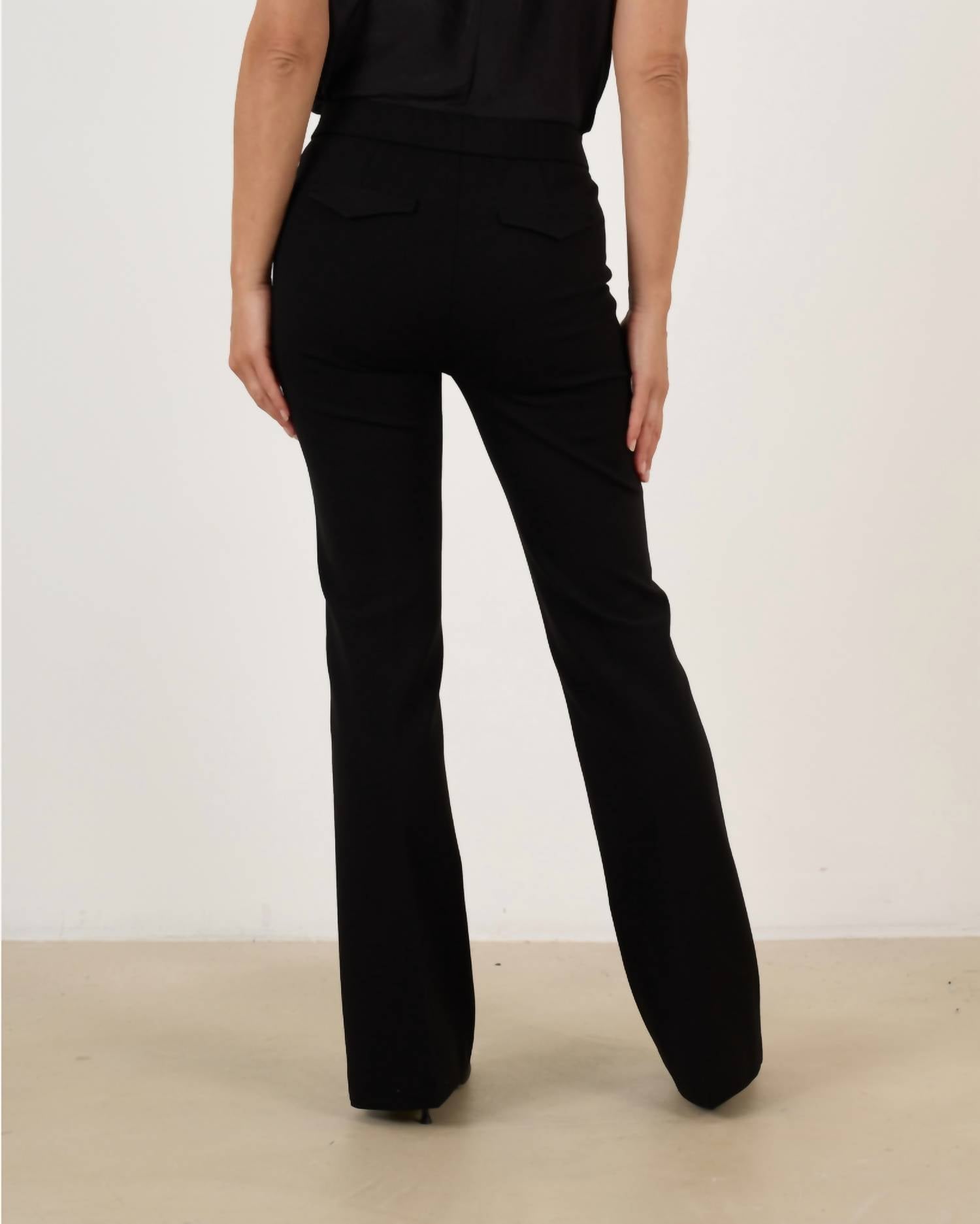 Discover the LUISA CERANO Bootcut Trousers in a sophisticated black hue, tailored for the modern woman. With a straight leg style, these trousers offer an elastic waistband featuring a decorative zipper, complemented by four decorative pockets. Crafted from a luxurious blend of 71% viscose, 24% polyamide, and 5% elastane, they ensure both style and comfort for a wide range of occasions.