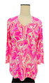 Discover the Women's Valentina Swirl Heart Print Top by Lulu-B, a vibrant addition to any wardrobe. With its long sleeves and V-neck design, this blouse combines comfort with style in a multicolor pink heart swirl. Crafted from a lightweight stretch knit blend of polyester and spandex, it offers a flowy silhouette perfect for sunny vacations and streetwear trends. Embrace effortless dressing with its pull-on closure, making it ideal for any standout occasion.