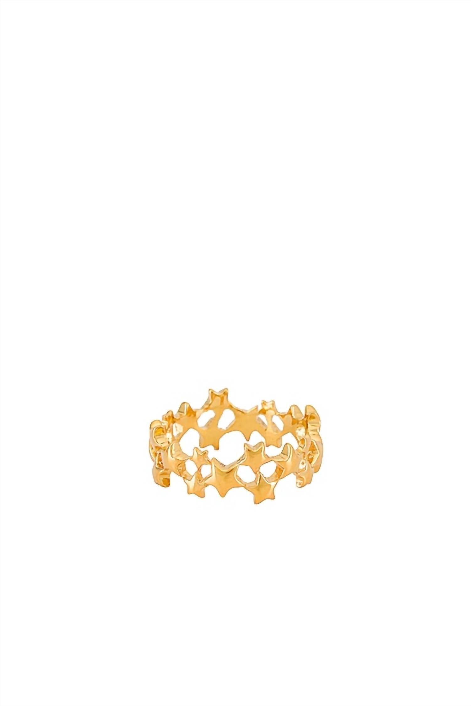 Wear this ring stacked or by itself... you can't go wrong.Band ring of clustered metal stars. Ring is 0.3″ (7.3mm) tall. Ring is 100% nickel-free and cadmium-free.