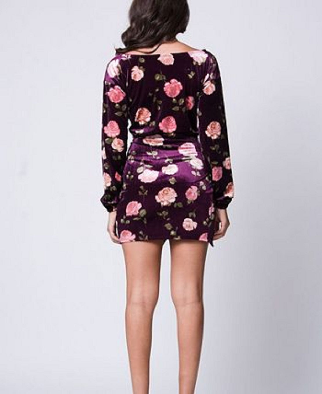 Off shoulder long sleeve dress features a flattering knot front and luxurious velvet fabric| Perfect party dress
