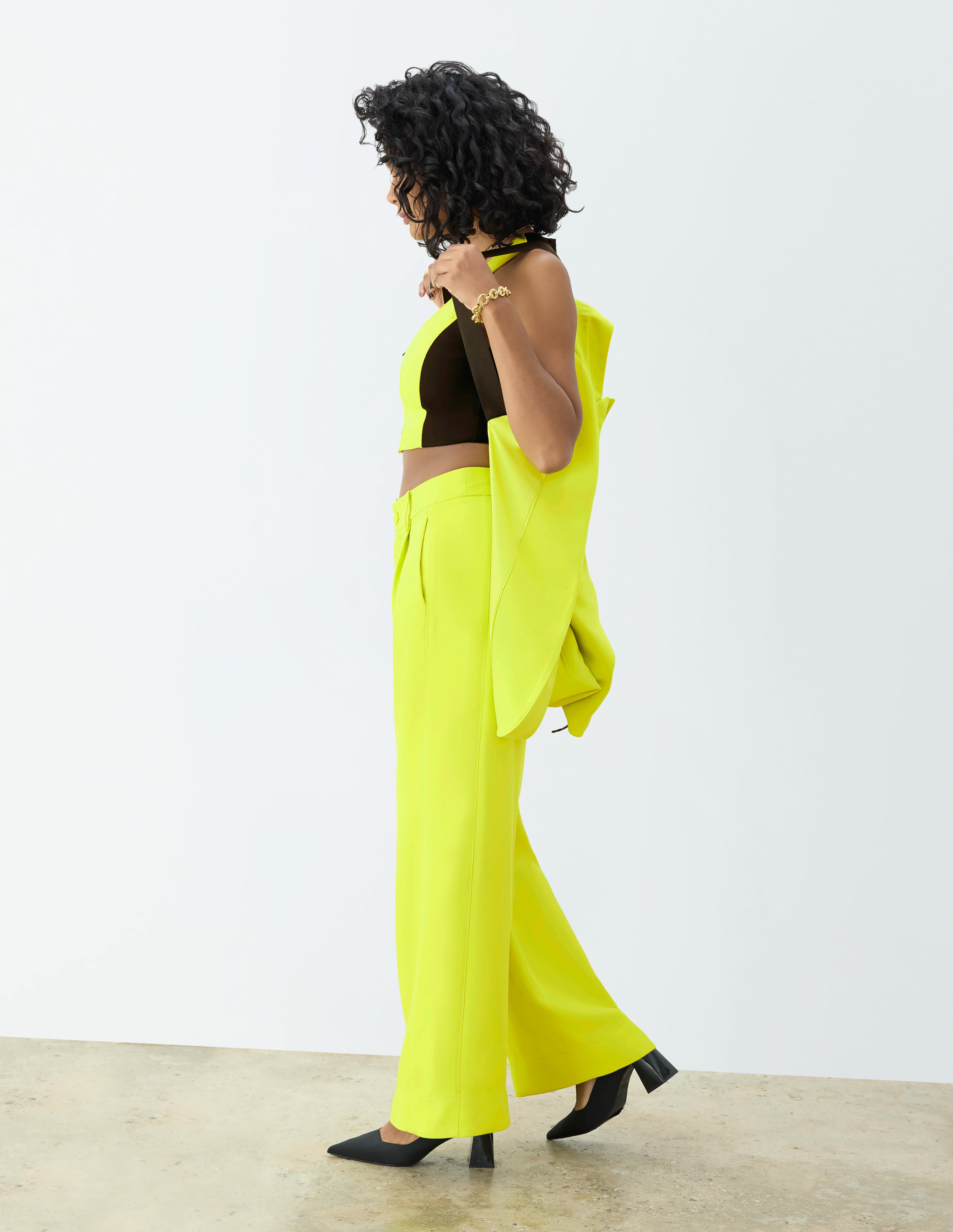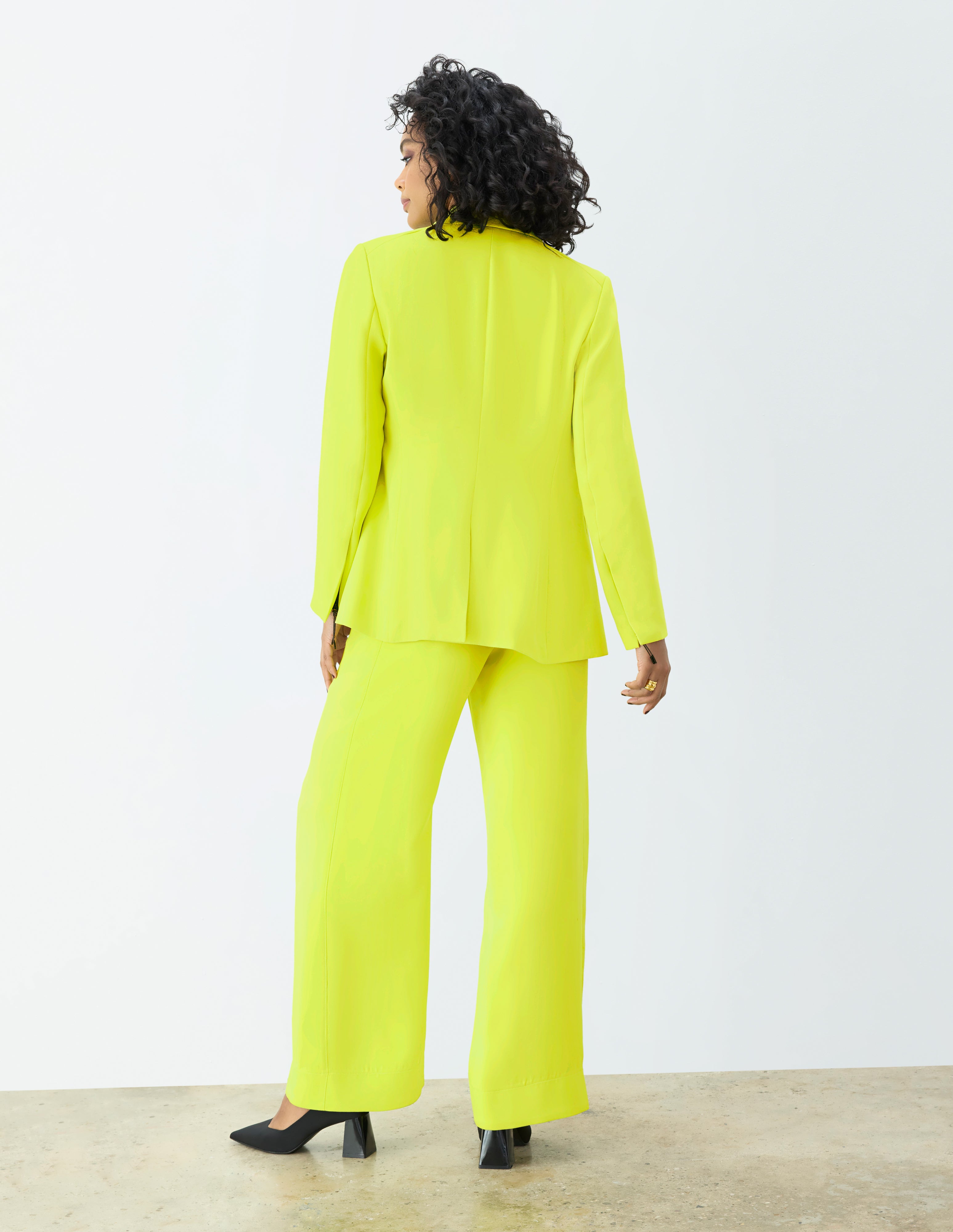 Made For You In NYC. This bold blazer features interior editor straps and a single-button front closure for a cinched waist. It's detailed with an angled chest pocket, two side pockets, and an interior chest pocket. Constructed from a soft, suiting fabric and runs true to size.