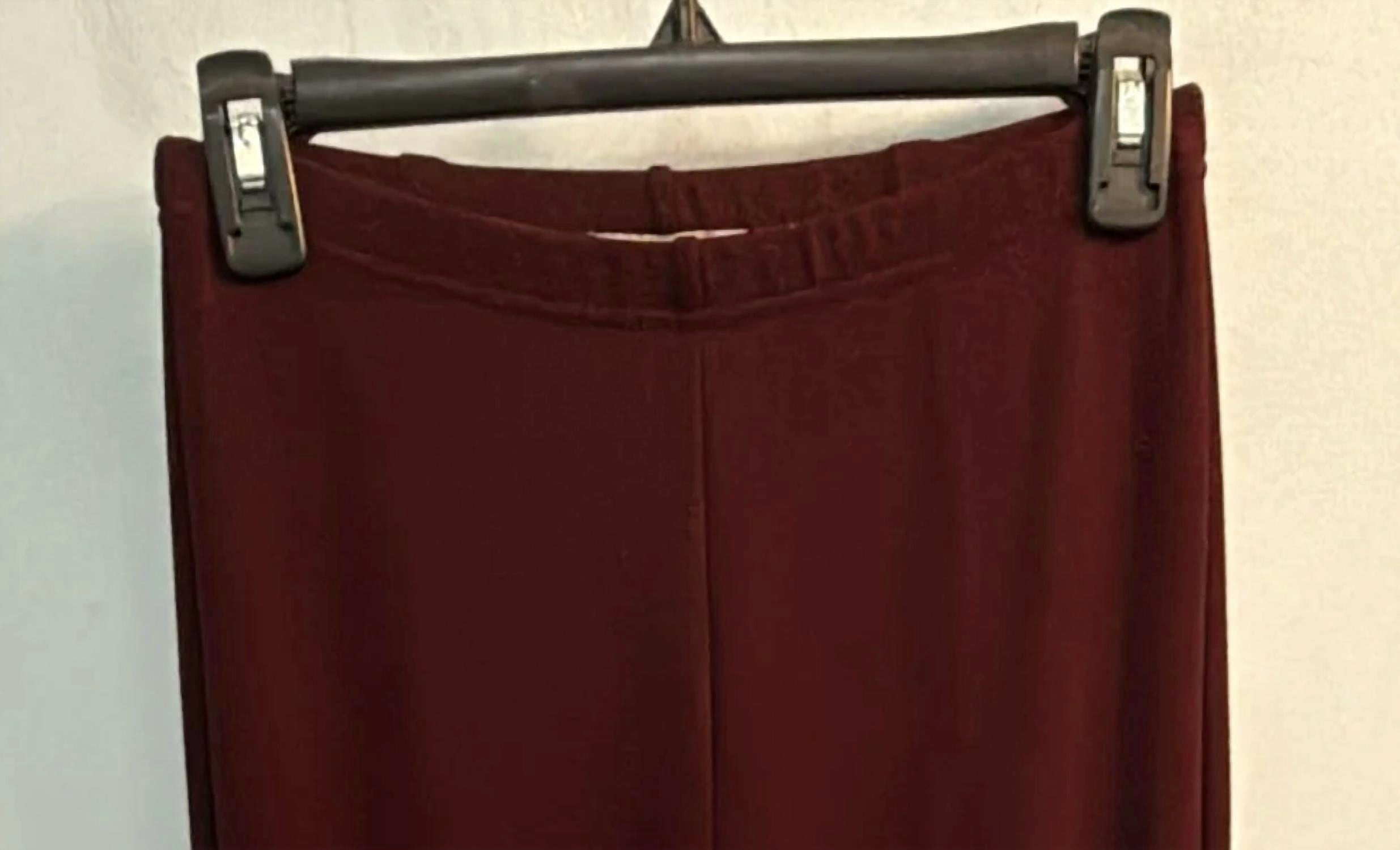 The perfect skinny pant for those stylish boots this season! Elevate your Thanksgiving ensemble with the Women's Casual Pull-on Pants by Lynn Ritchie, crafted for the minimalist at heart. These burgundy skinny leg pants are made from durable polyester, ensuring a slim fit that flatters effortlessly. Boasting a pull-on closure for convenience, these pants are designed without pockets for a sleek, uninterrupted look. Perfect for spring occasions, these solid pattern pants are your go-to for a holiday party appearance.