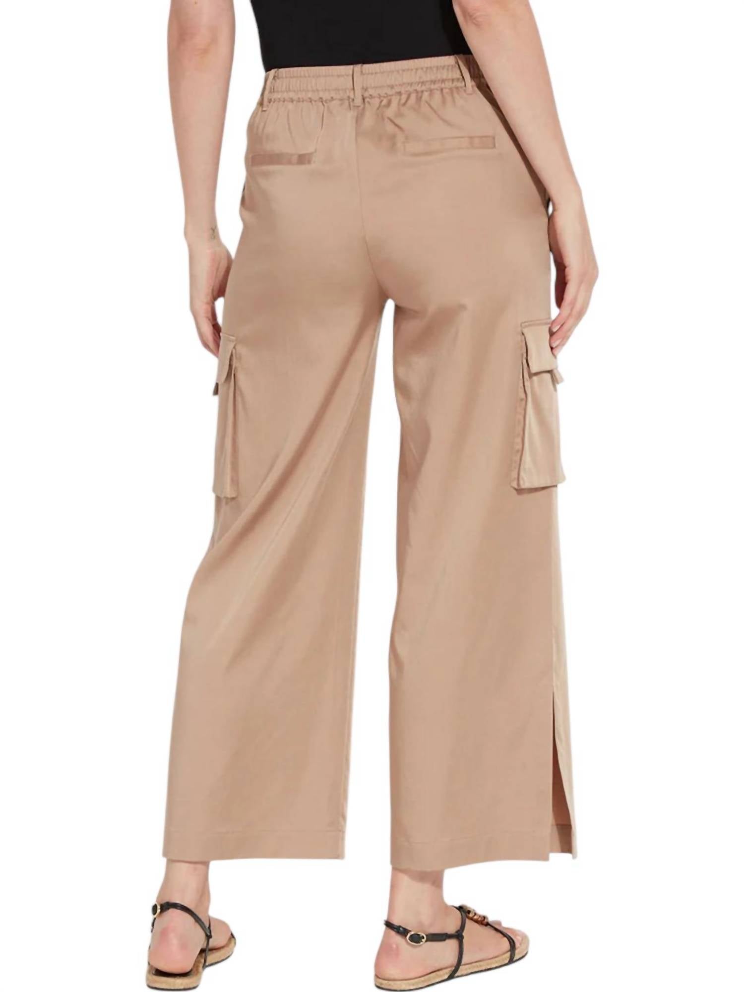 Upgrade your wardrobe with these cropped pants, designed to merge sophistication and wearability. The tailored fit ensures ultimate comfort during long days or nights out. Ankle and cropped pants feature a relaxed and wide-leg design, enhanced by a flat front with an elastic back for ultimate comfort. Made from a blend of 54% Tencel, 43% Polyester, and 3% Spandex, they offer fluid stretch satin elegance. Pull on. With front side and cargo pockets, and back faux welt pockets, they maintain functionality with a sophisticated touch.