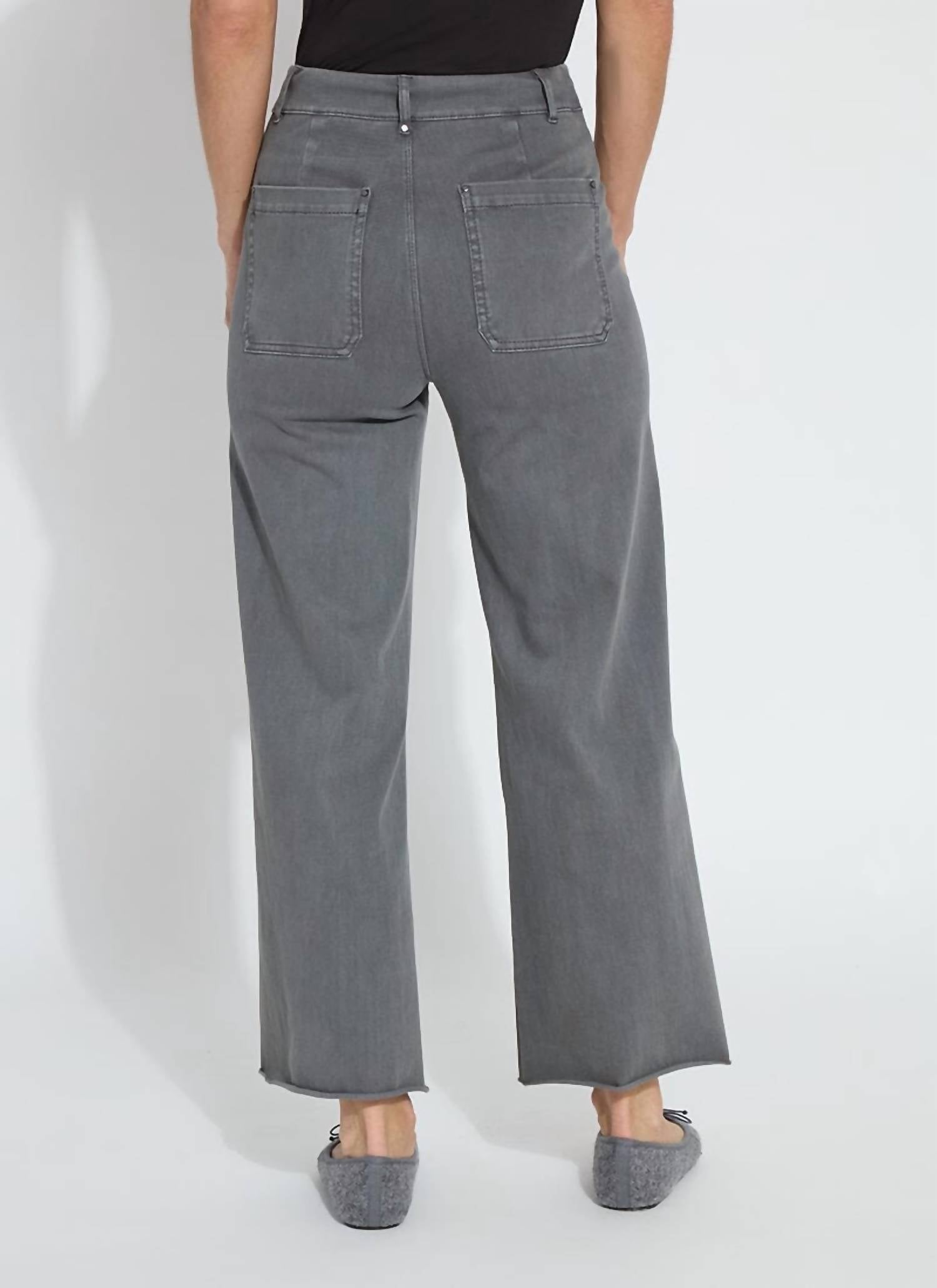 Just as cute as they are comfortable. Embrace the effortless style of the Erin High Waist Wide Leg Denim by Lysse, presented in a sophisticated Antique Wash Charcoal. These jeans feature a high-rise waist, a 28" inseam, and an extra-wide leg without side seams, crafted from 4-way stretch Knit Denim composed of 95% Cotton and 5% Spandex. The concealed patented waistband, back patch pockets with gunmetal studs, and raw-edge hem combine comfort with chic detailing. Closure type: Button closure. Care instructions include machine wash cold, line dry, and avoid ironing or bleaching.