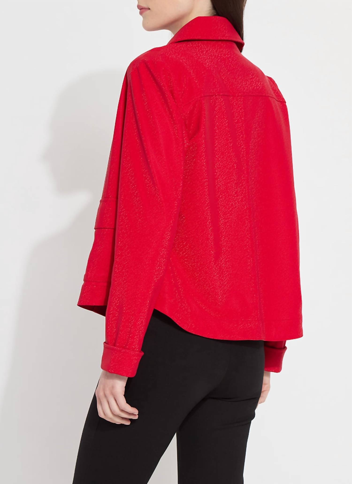 Meet the Kendra Vegan Suede Jacket by Lysse, a striking casual piece in a rich deep red hue. This women's jacket showcases a solid pattern, with practical pockets and a classic collar rounding out its chic design. It features long sleeves and omits traditional closure types for a sleek look. Crafted to complement any wardrobe, this jacket effortlessly merges style and function.