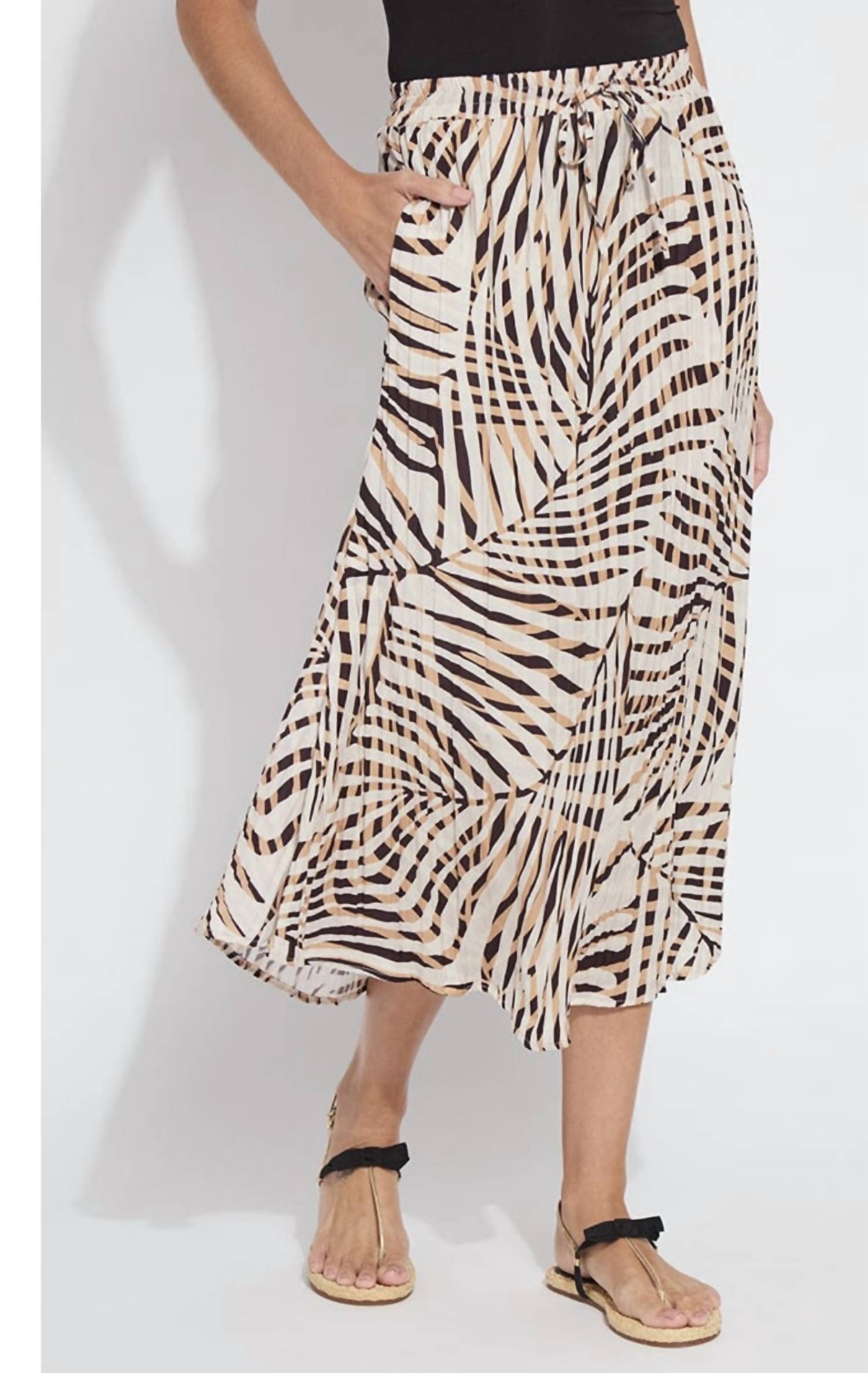 Made from Lightweight Satin, The Packable Pleated Printed Skirt offers permanent pleats, an elastic waistband with threaded keyhole drawstring and an A-line shape. We love it paired with the Marella Drop Sleeve Knit Top and sandals. To store or pack, twist the skirt longways and then again like a pretzel. Place inside the accompanying bag. Remove from your luggage and it’s ready to wear. Machine wash and hang dry. Twist and bag again for storage. • Fitted at waist, full skirt • Lightweight Satin: 100% Polyester • Model is 5’10”, wearing size S • Style #3625