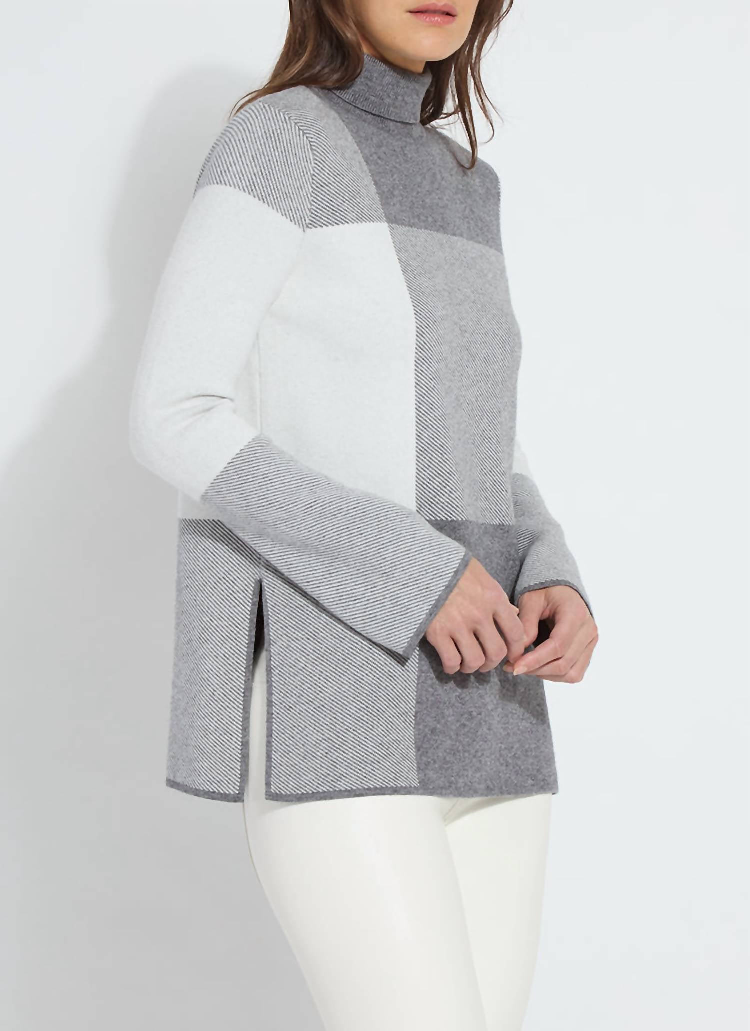 A classic staple that every closet needs. Introducing the Victoria Pullover Sweater by Lysse, a stylish addition perfect for your winter wardrobe. Crafted in a grey check pattern known as Festive Allure Check, this sweater features a cozy turtleneck and long sleeves. Designed with a fun plaid and check pattern, it's an essential piece for chilly days. Originating from Lysse's renowned collection, it offers timeless appeal with its classic cowl and turtleneck category.