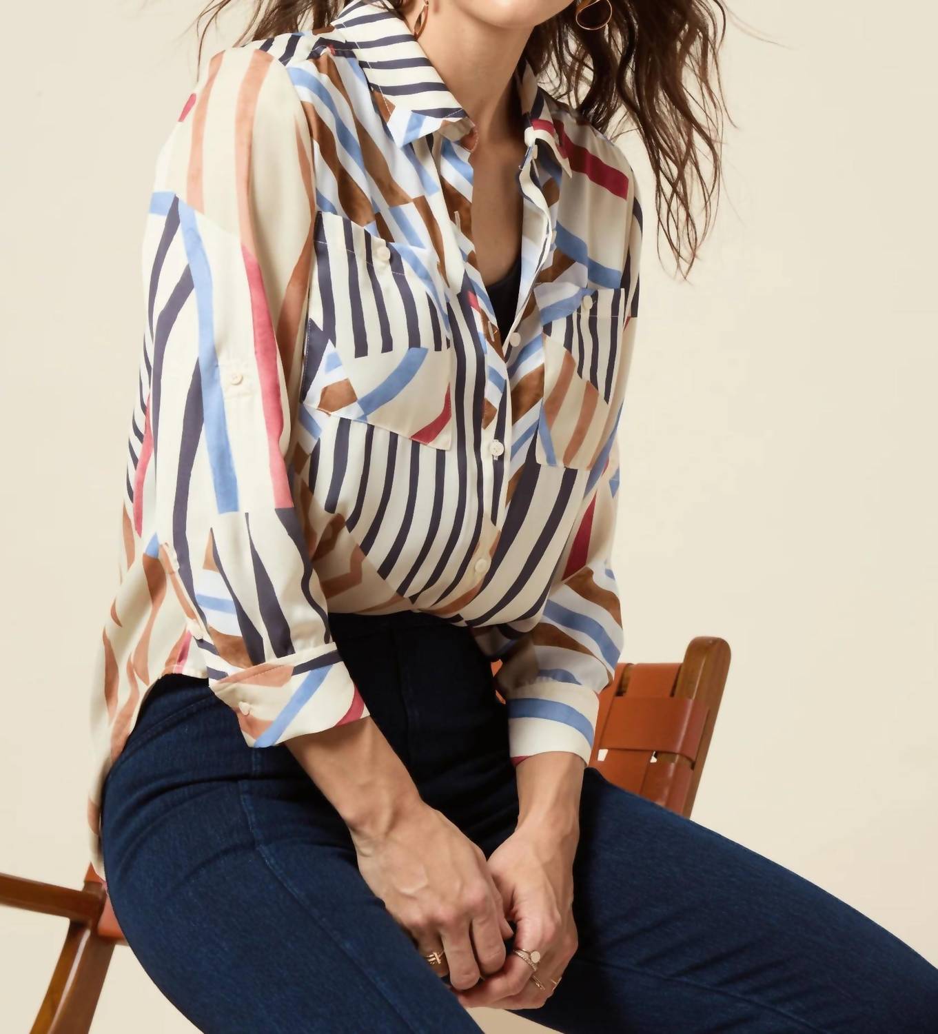 A classic button down shirt that will never go out of style. Unlock sophisticated style with the Women's Yesenia Roll Tab Utility Shirt by Lysse, an essential for your summer streetwear wardrobe in striking Stripe/Art. Designed with practical long roll tab sleeves and a collar neckline, this easy-fit shirt drapes beautifully in lightweight satin, showcasing a 100% polyester composition. Featuring a front placket and back yoke with pleats, this versatile piece fits seamlessly with leggings, skinny jeans, or tucked into wider cuts for a chic vacation look. While the country of origin and care instructions are unavailable, steam or iron gently upon delivery to restore its pristine appearance.