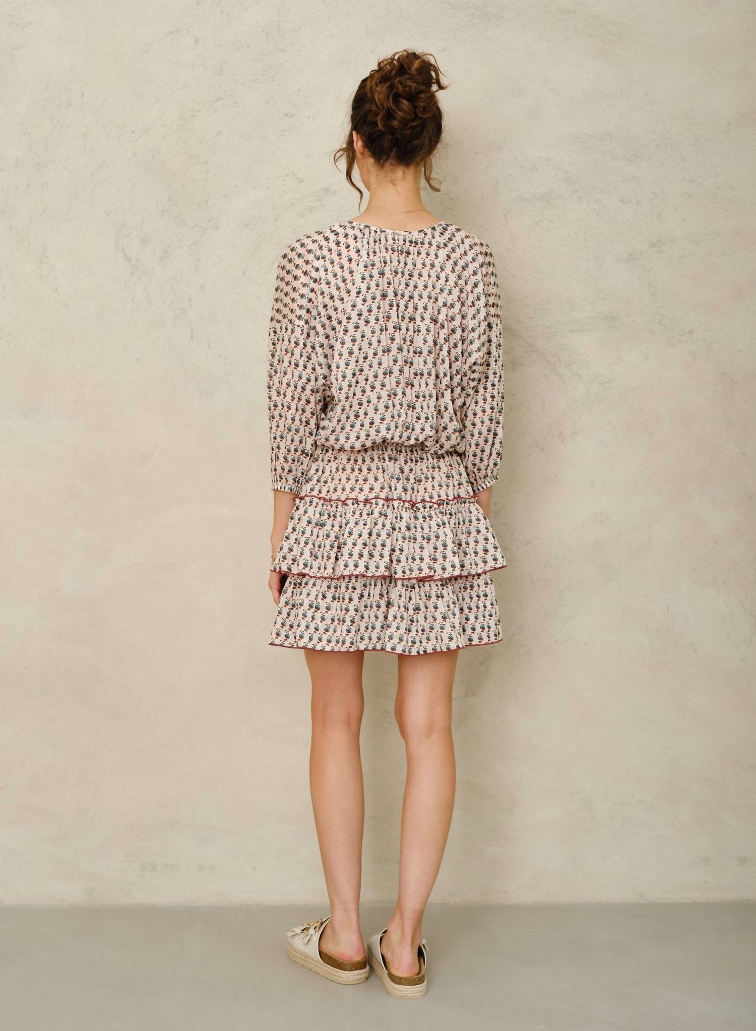 A flattering yet comfortable dress you'll be reaching for season after season. Introducing the Devi Print Long Sleeve Dress by M.A.B.E., a stunning addition to your vacation wardrobe with a touch of 90s fashion flair. Crafted in India from delicate cotton silk, this dress features pretty floral blockprints and tiered silhouettes for a soft, elegant look. The long sleeves boast elasticated cuffs, complemented by cotton tassel ties and a V-neckline, offering chic draped shoulders. Designed for effortless style, it has a pull-on closure and requires hand washing.