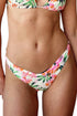 Elevate your beach style with the Palm Glow Reversible Splendour Bikini Bottom by MAAJI in a light beige/green floral design. This women's bikini bottom features a low-rise waist for a cheeky coverage, perfect for a Boho Chic summer look. Made for beach days and holiday fun, its reversible design offers versatility in styling. Care: Hand wash and line dry for best results.