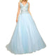 Step into elegance with the Aqua Fit and Flare Ball Gown by MAC DUGGAL, designed for a stunning entrance. This sleeveless gown boasts a deep V-neck and a silhouette that enhances your natural shape. Crafted with intricate lace and bead applique on the bodice and a tulle skirt with a satin lining, this floor-length dress is perfect for prom. Closure is secured with a zip.