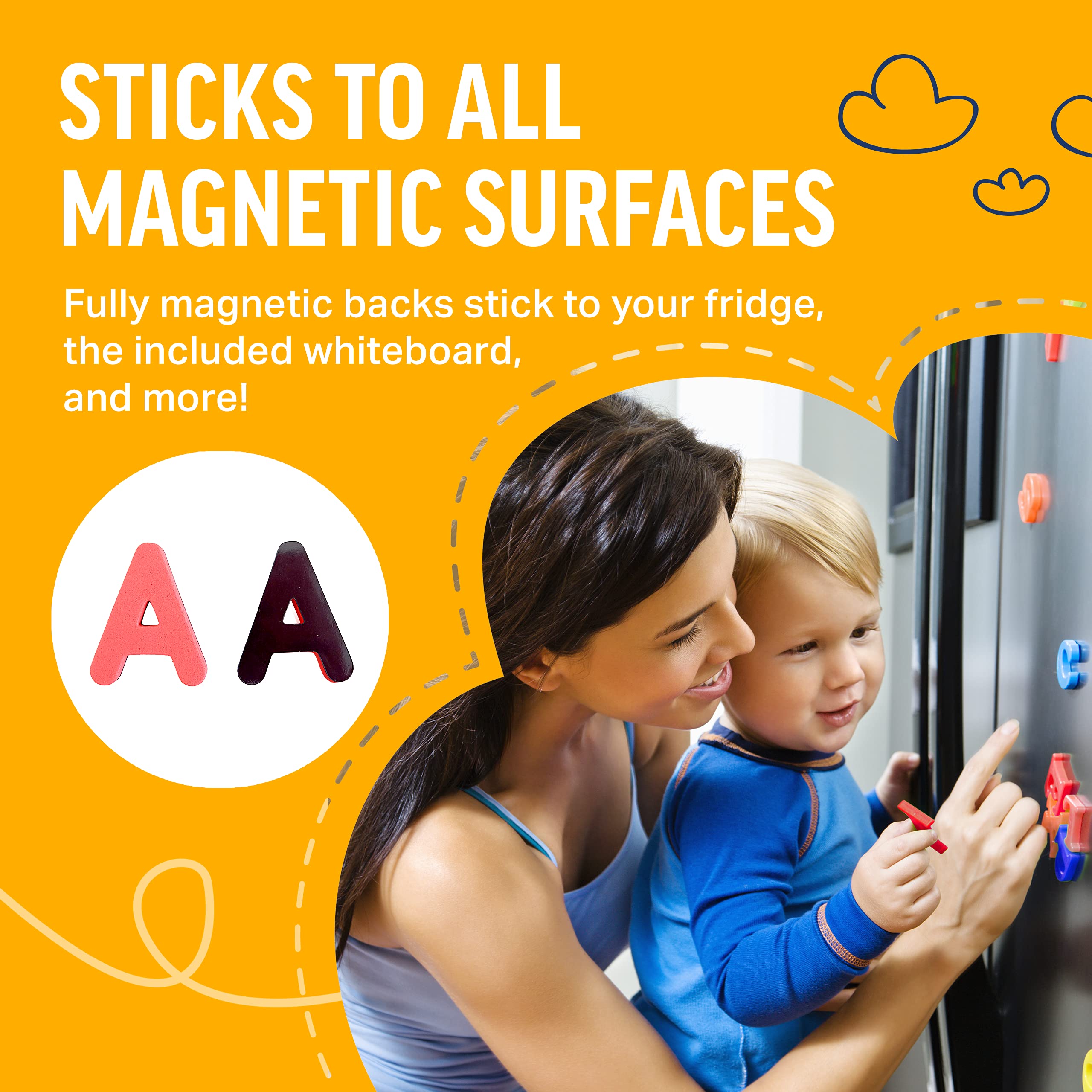 • With a convenient storage box included, these magnetic letters can be easily stored and transported, making them perfect for on-the-go learning or for keeping little hands busy during long car rides or plane trips.