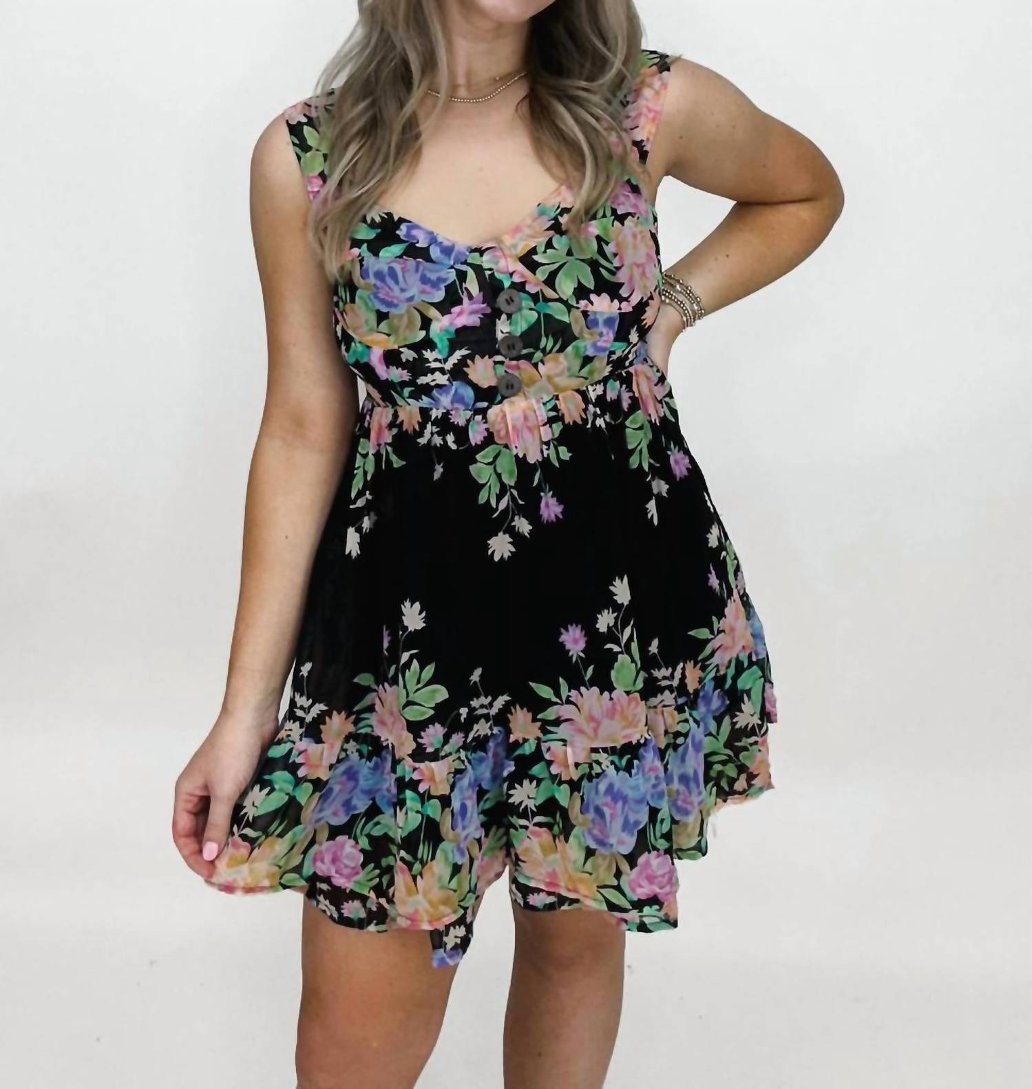 A short and breezy dress for those warmer days. Introducing the Charlene Dress by Mahila, a captivating mini dress in a chic sable hue. This sleeveless A-line dress showcases a feminine sweetheart neckline, adorned with a delicate floral pattern. Closure is an effortless pull-on style designed for women seeking both comfort and grace. Care: Machine wash and lay flat to dry.