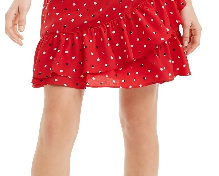 Maison Jules Women's Ruffled Polka Dot Short Ruffled Skirt Red Size XX-Small