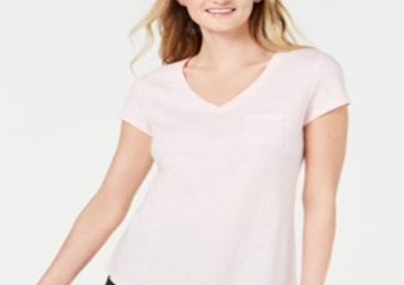 Maison Jules Women's V Neck Patch-Pocket T-Shirt Pink Size X-Large