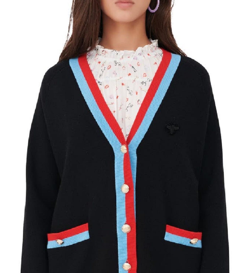 Front button closure|V-neck|Long sleeves|Front welt pockets|49% viscose; 29% polyester; 22% polyamide|Hand wash| dry flat