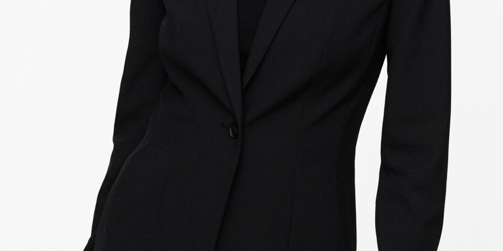 MANGO Women's Essential Fitted Padded Shoulder Blazer in Black Size 4