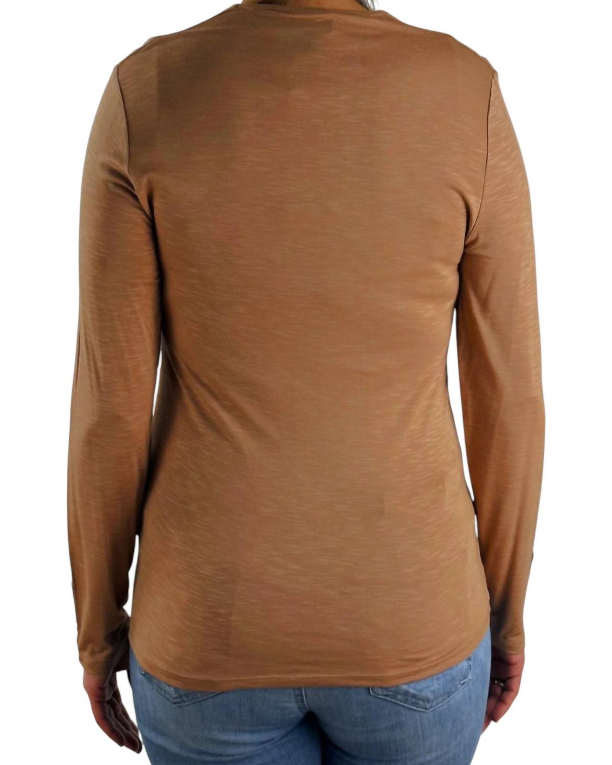 A long sleeve top you can wear with denim, skirts, well... just about anything! This shirt features a V-neckline and button accents on the long sleeves, ensuring a comfortable fit for any occasion. Made from 95% viscose and 5% elastane, the material offers a soft and flexible feel. It has a convenient pull-on closure and can be easily maintained with machine washing according to the care instructions.