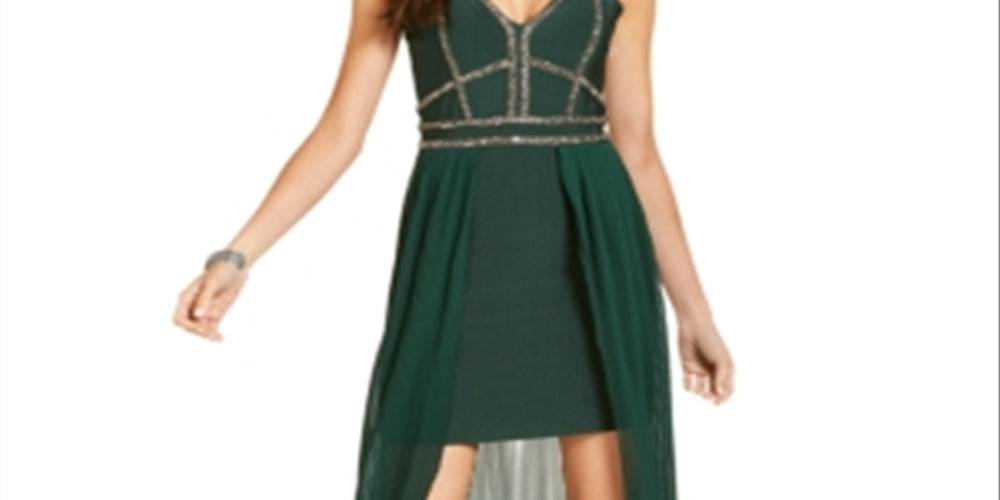 Marciano Women's Green Embellished Sleeveless V Neck Short Hi-Lo Formal Dress Size XS