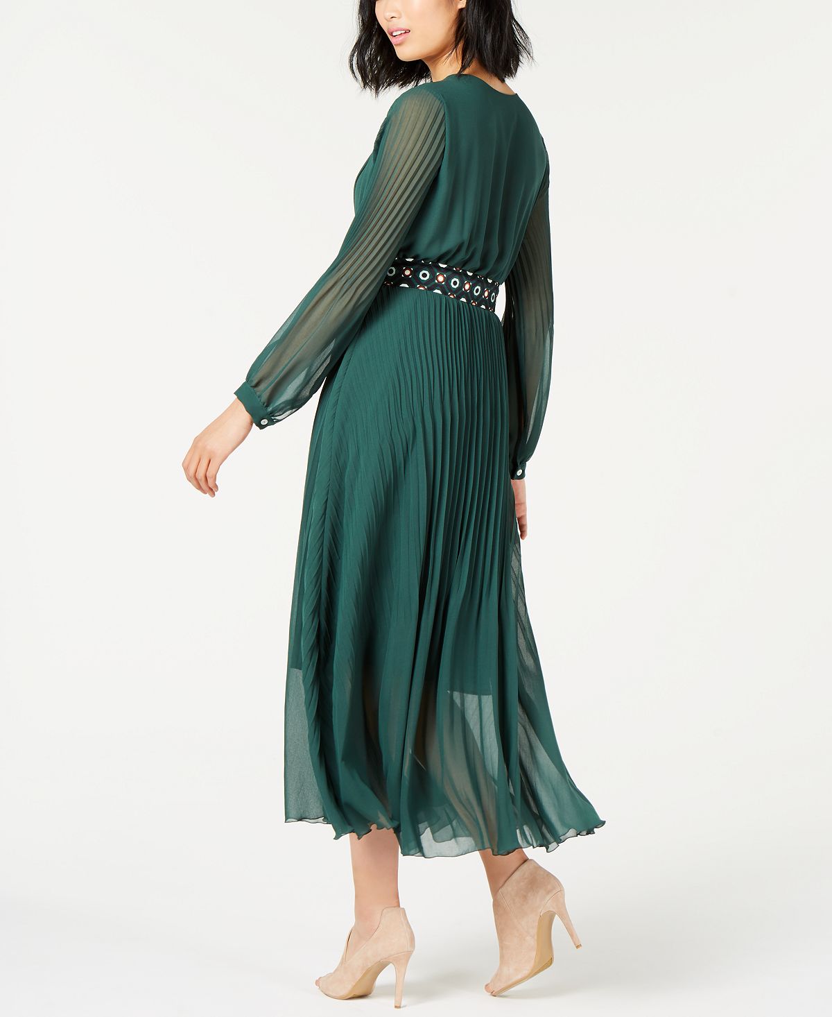 A bold geo-print belt lends a modern touch to the flowing silhouette of this Marella maxi dress| styled in beautifully pleated georgette.| V-neck; Maxi silhouette| Pull-on styling| Pleated throughout; printed removable belt| Polyester| Dry clean