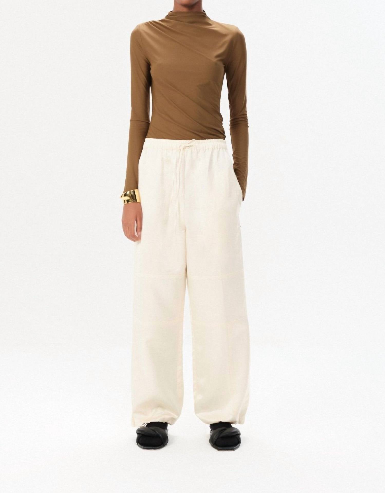 A straightleg pant that workes season after season. Dress these up with your favorite blouse or keep it casual with your go-to tee. Meet the Garin Halley Pants by Maria Cher, a stylish addition to your wardrobe with their relaxed, high-rise fit in elegant off white. These straight-leg pants feature a comfortable pull-on closure and a versatile solid pattern, making them perfect for travel and everyday wear. Crafted from a blend of 55% Viscose, 25% Cotton, and 20% Linen Twill, they offer a soft and breathable feel. Care: Hand wash in cool water, lay flat to dry, and soft iron without bleach or twisting.