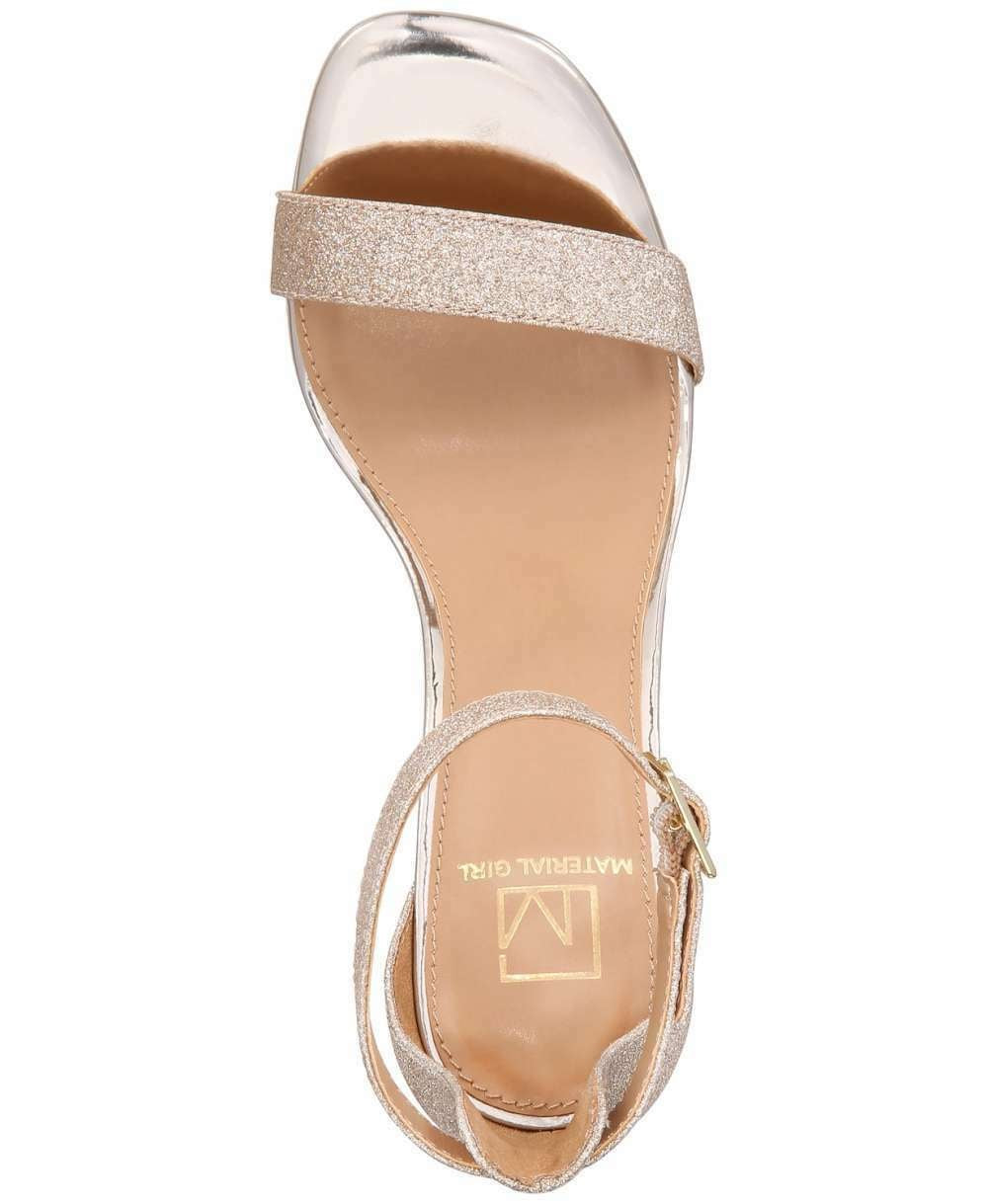 Material Girl Women's Blaire Fabric Open Toe Ankle Strap Classic Pumps Gold Size 9 M