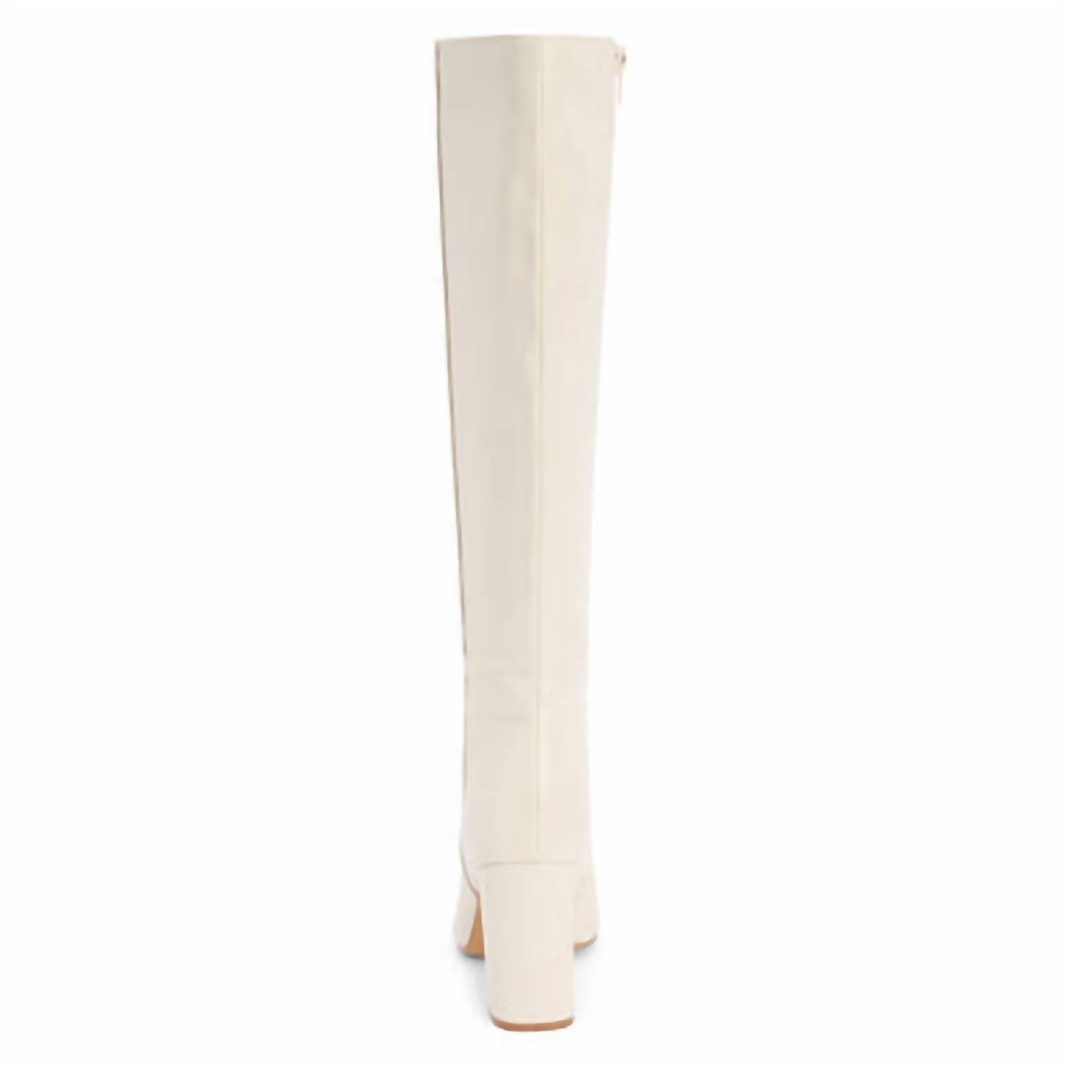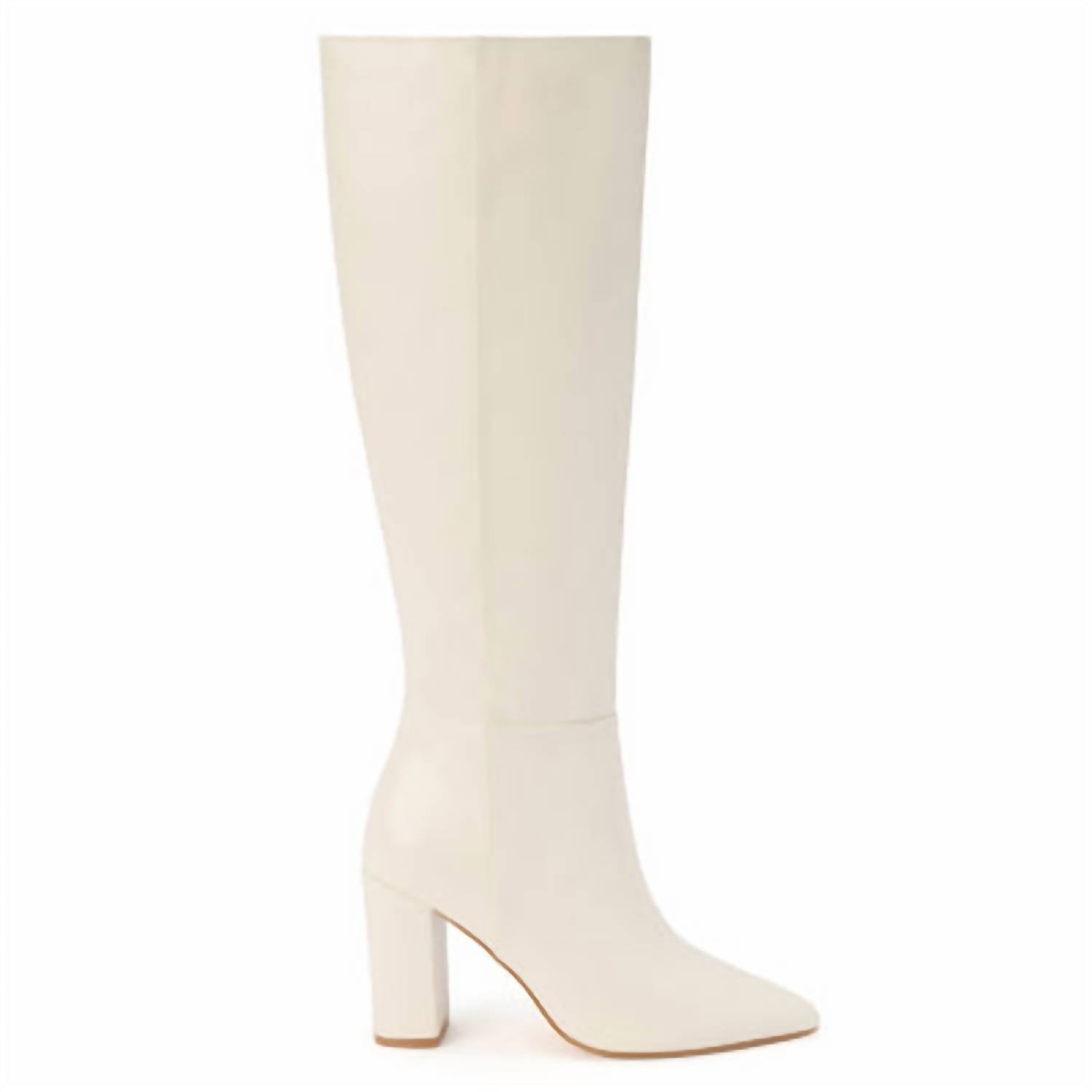Step into style with the Women's Faithful Boots by Matisse, designed for the bold, fashion-forward woman. These tall heeled boots in a sophisticated ivory hue feature a chic block heel measuring 3.5 inches, paired with a pointed toe that adds elegance to any ensemble. Crafted from premium leather, they provide a comfortable fit thanks to the zip-up side closure. Perfect for making a statement, these boots are a must-have addition to any fashionable wardrobe.