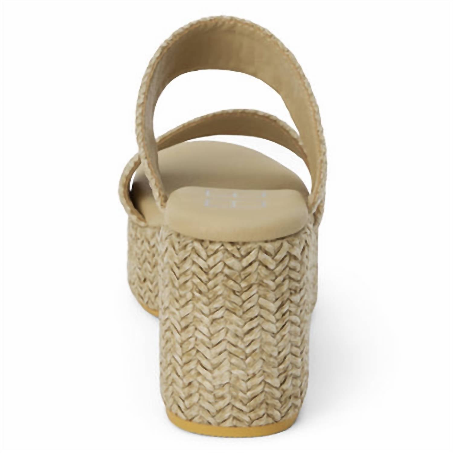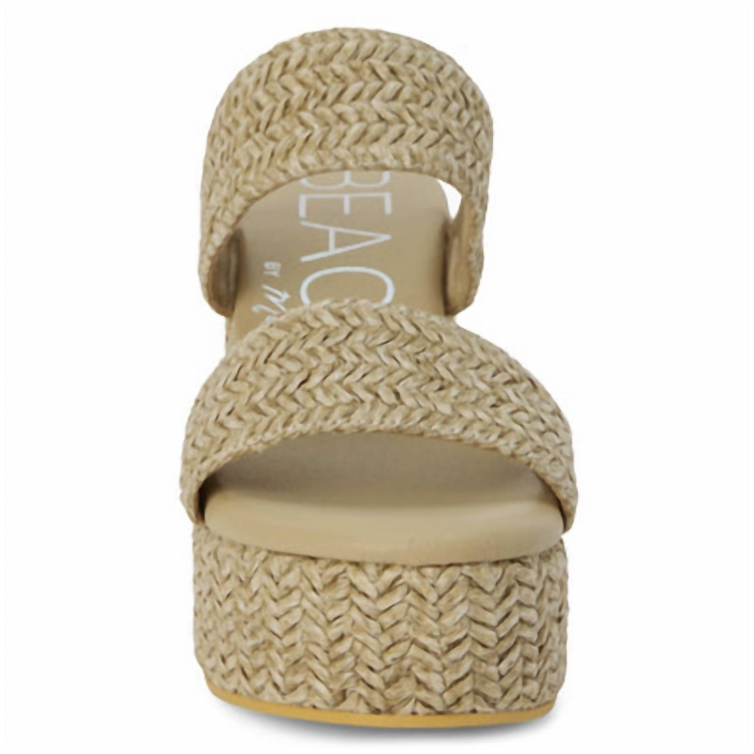 Flowy dresses, cropped pants, and even jumpsuits... this sandal works with them all! Elevate your summer style with the Women's Ocean Avenue Platform Sandal by Matisse in a chic taupe hue. Designed with a braided raffia texture and a bold platform heel, these sandals effortlessly blend style with comfort. Crafted from vegan materials, they are an eco-friendly choice for any beach day occasion. The open toe design aligns with the Boho Chic trend, boasting a 3-inch heel height perfect for the summer season.