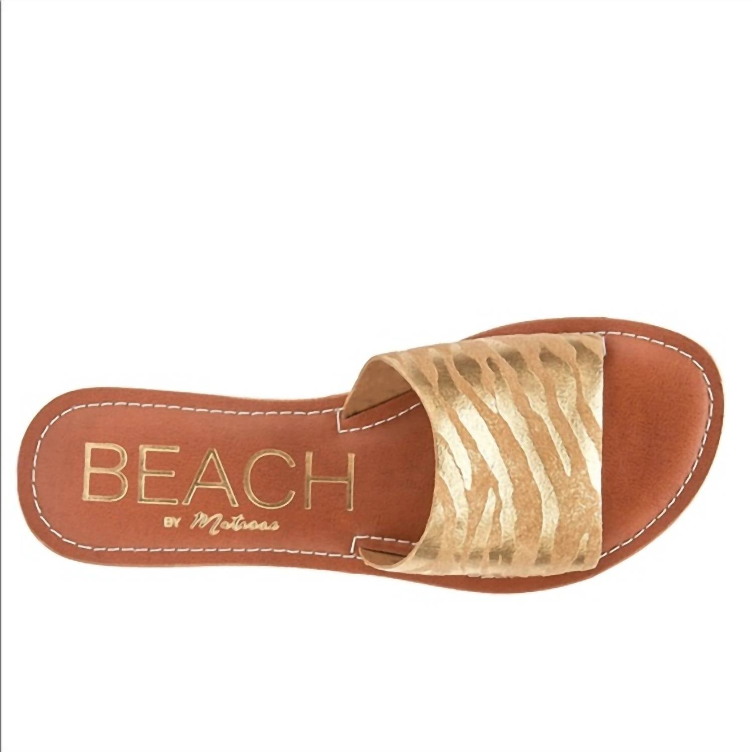 Flowy dresses, cropped pants, and even jumpsuits... this sandal works with them all! Step into effortless style with the Women's Gold Zebra Cabana Sandal by Matisse. These chic slides feature a striking zebra pattern and metallic gold accents, offering a stylish touch to your casual look. With a flat heel under 1 inch and an open round toe, comfort is prioritized in every step. The slip-on design, crafted from premium suede, ensures ease and a luxe feel, perfect for the on-the-go woman.