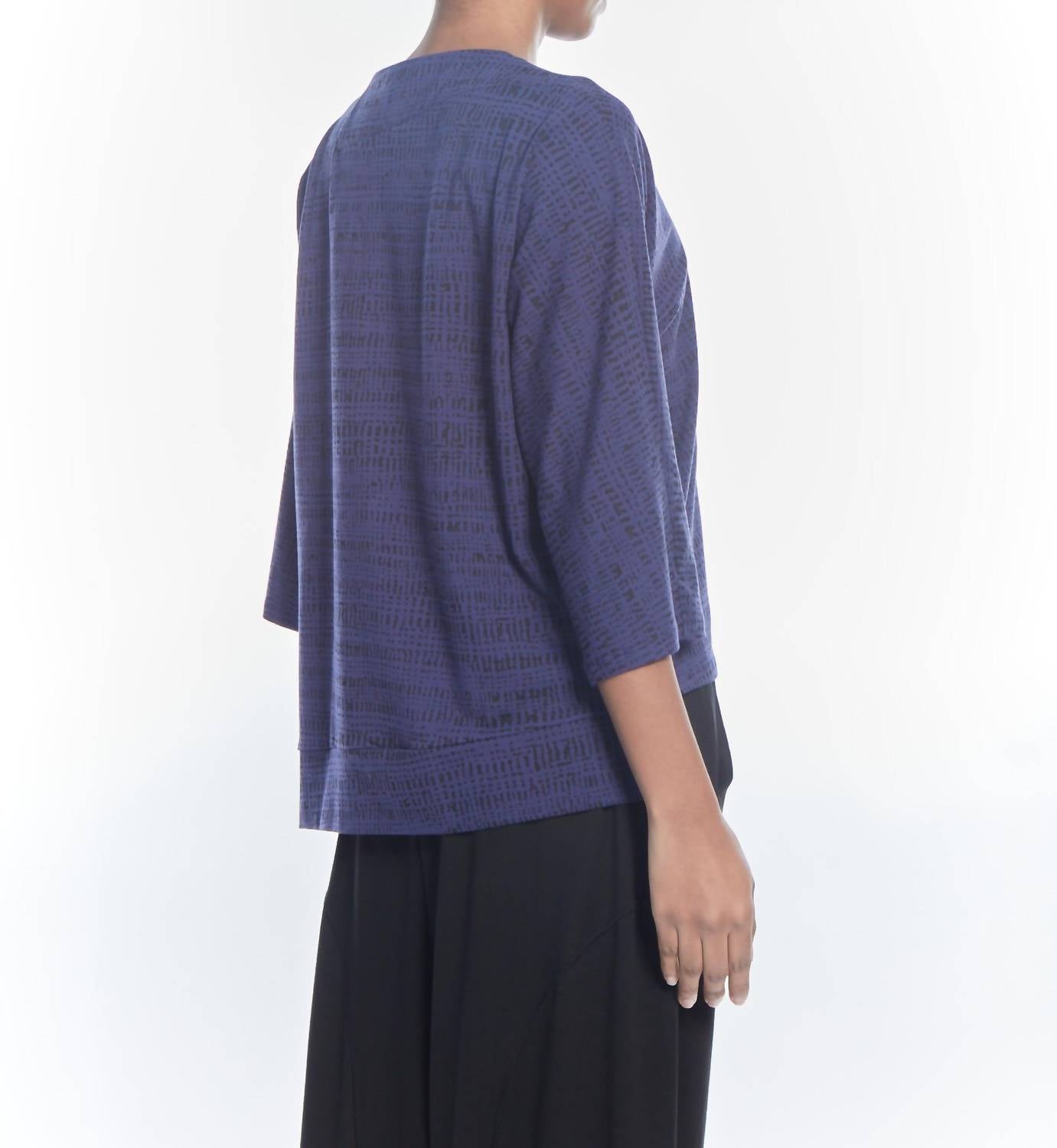 A timeless blouse that will never go out of style. Meet the Ania Patterned Quarter Sleeve Top by Matthildur, a stylish blend of form and function in striking blue ink stone print. This boxy blouse features three-quarter sleeves and a contemporary boatneck, crafted from high-quality cotton for comfort and durability. Closure: Pull-on style. Care: Machine wash and tumble dry, ensuring easy maintenance for your wardrobe staple.