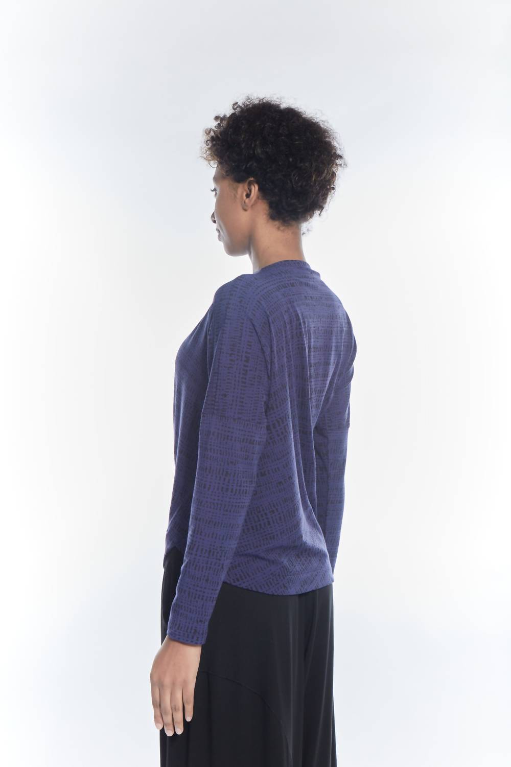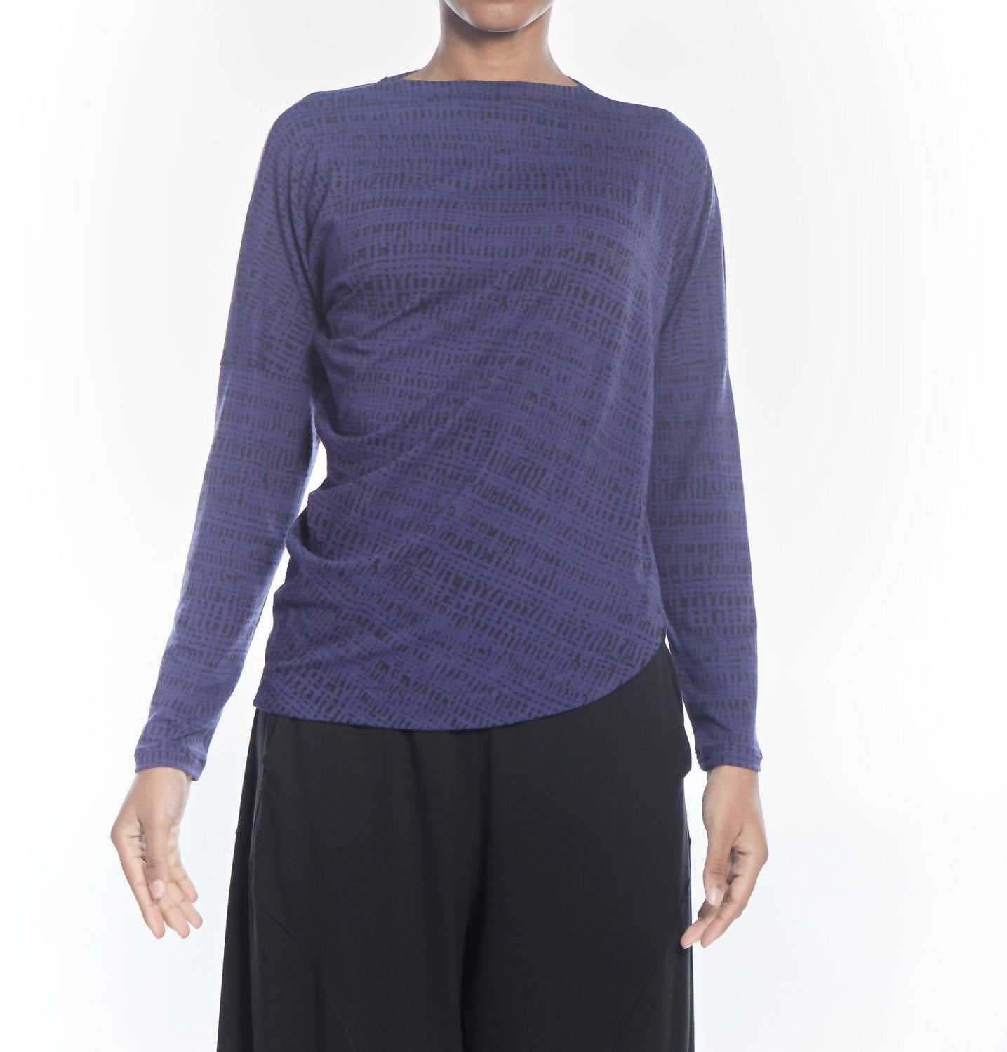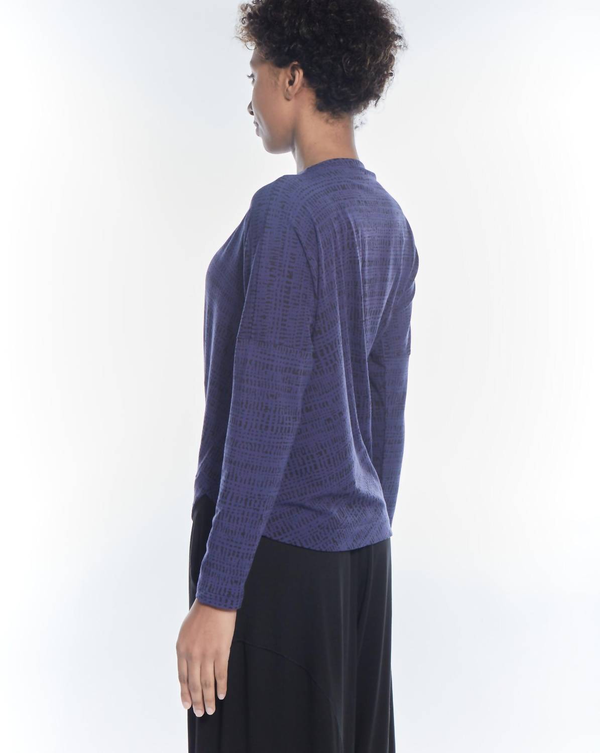 Great fit, cute design, soft fabric. You'll love everything about this long sleeve tee. Introducing the Luna Long Sleeve Top by Matthildur, a chic addition to your collection in an elegant Ink Stone Print. Crafted from Peruvian cotton lycra, this top features a flattering boatneck and a unique asymmetrical look with draped ruching. Perfect for any ensemble, its relaxed fit offers a touch of sophistication while being machine washable and dryer friendly. Model is 5'6" and wearing a size XS.