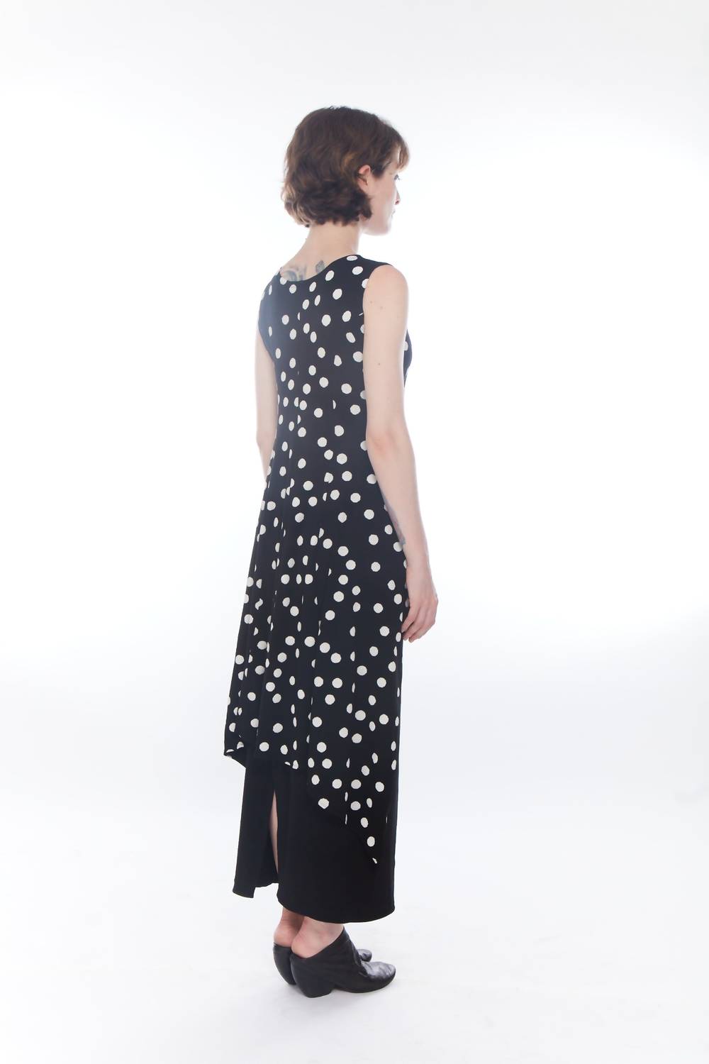 Pair this with your favorite jeans and slides for your next girls night out. Elevate your wardrobe with the Madelyn Dotted Sleeves Top by Matthildur, a chic addition to the MxM Collection. This sleeveless blouse in black mini dots features a stylish asymmetrical front and an extended back that reaches to the knee. Made from comfortable cotton, it showcases a scoopneck design and a convenient pull-on closure. Care instructions are simple with a machine wash and tumble dry.