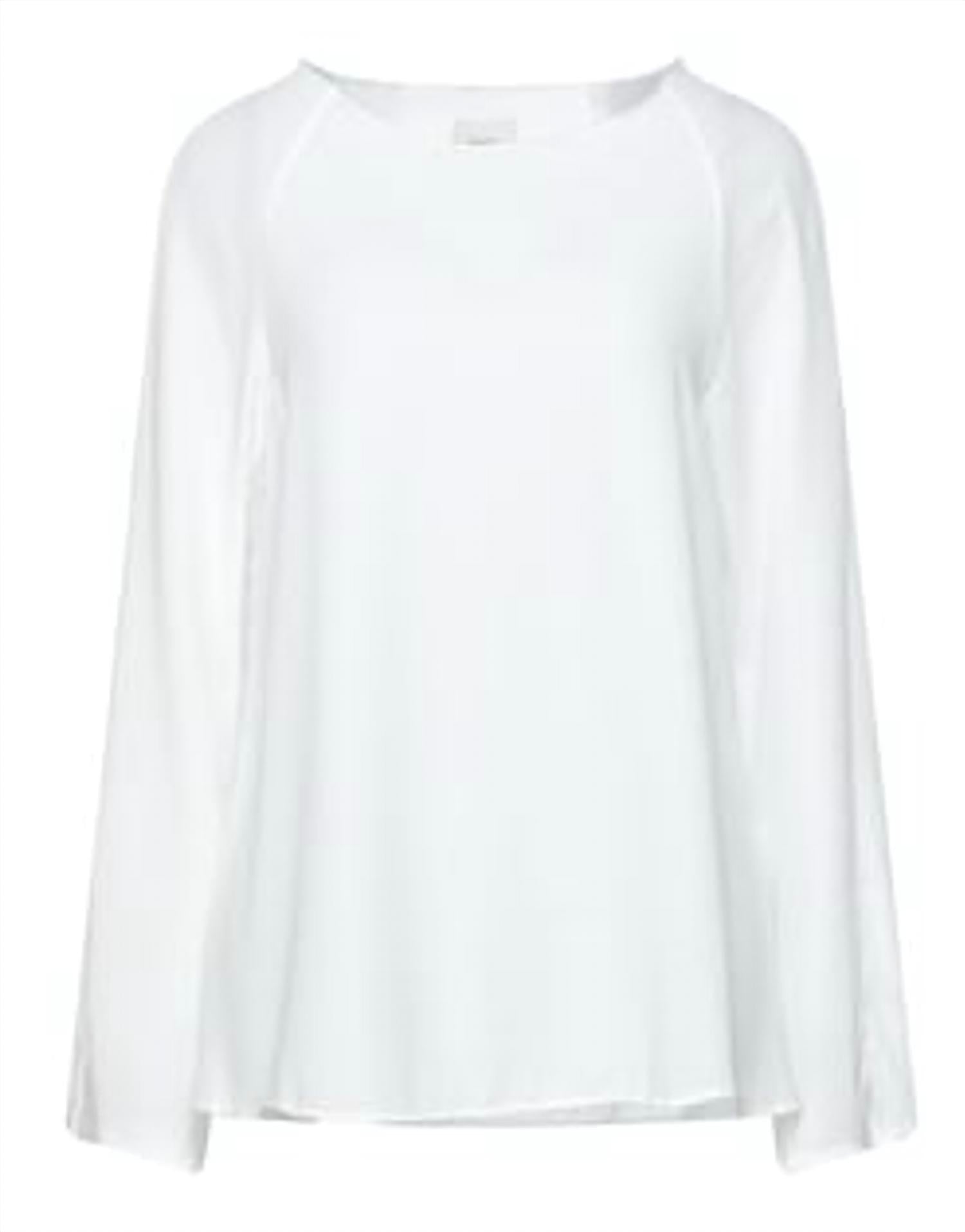 A long sleeve top you can wear with denim, skirts, well... just about anything! This top is made from crepe fabric and features a clean, minimalist design in a basic solid color. It has long sleeves and a classic round collar, offering a timeless silhouette. Designed without appliqués or pockets, it maintains a streamlined and polished look. Crafted from 100% polyester, it provides a lightweight and easy-care finish.