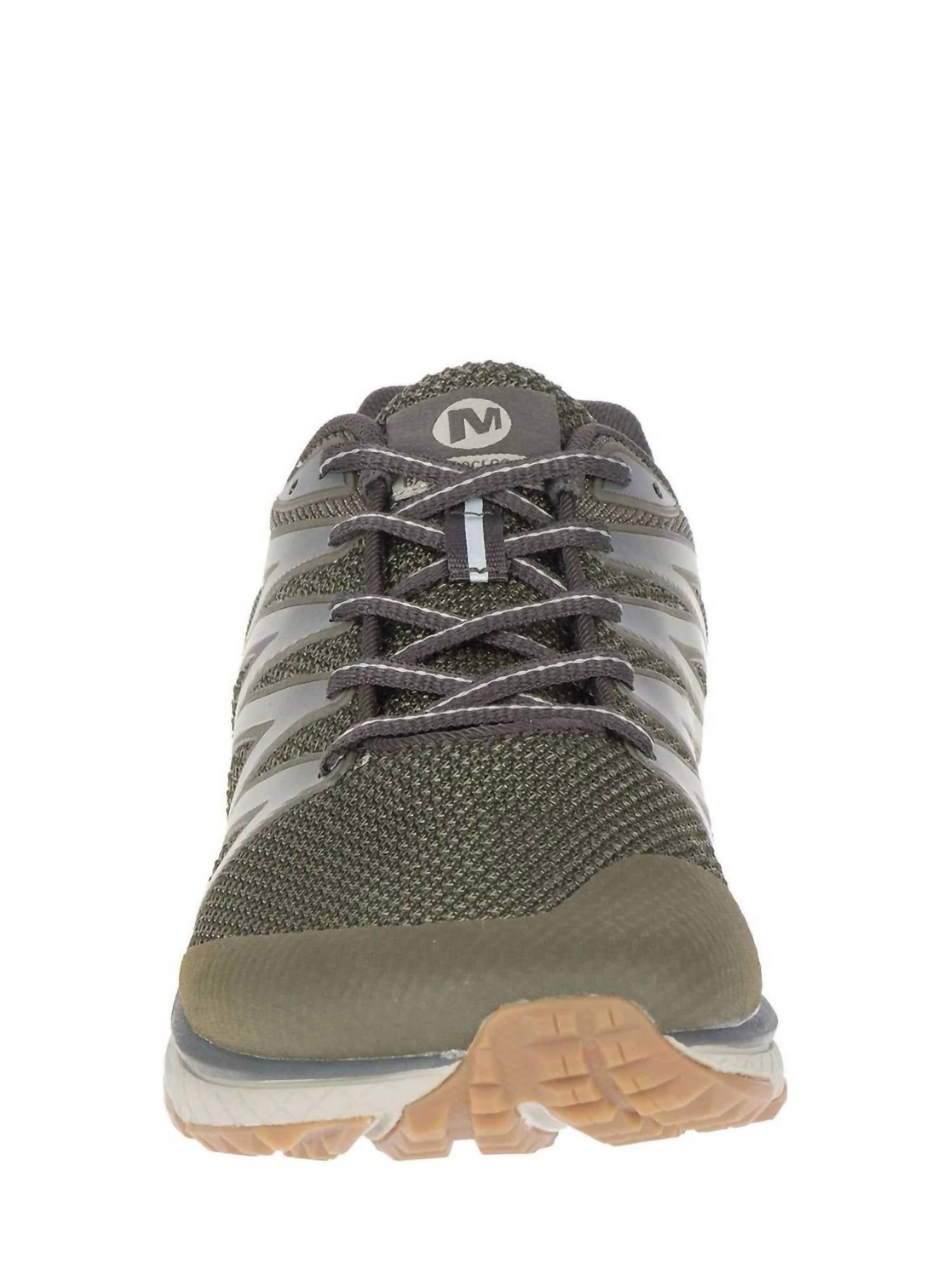 Features include a mesh and TPU upper. Traditional lace closure. Breathable mesh lining. Integrated footbed. Merrell Barefoot construction. FLEXconnect™ dual-directional flex-groove EVA midsole for agility and stability. Vibram® TC5+. Vegan friendly. Drop: 0mm; stack height (heel/toe): 17.2/17.2mm; footbed: 0mm; insole: 3mm; midsole: 10/10mm; sole: 1.2mm web, 3mm lug. Hyperlock™ TPU film heel counter for security.