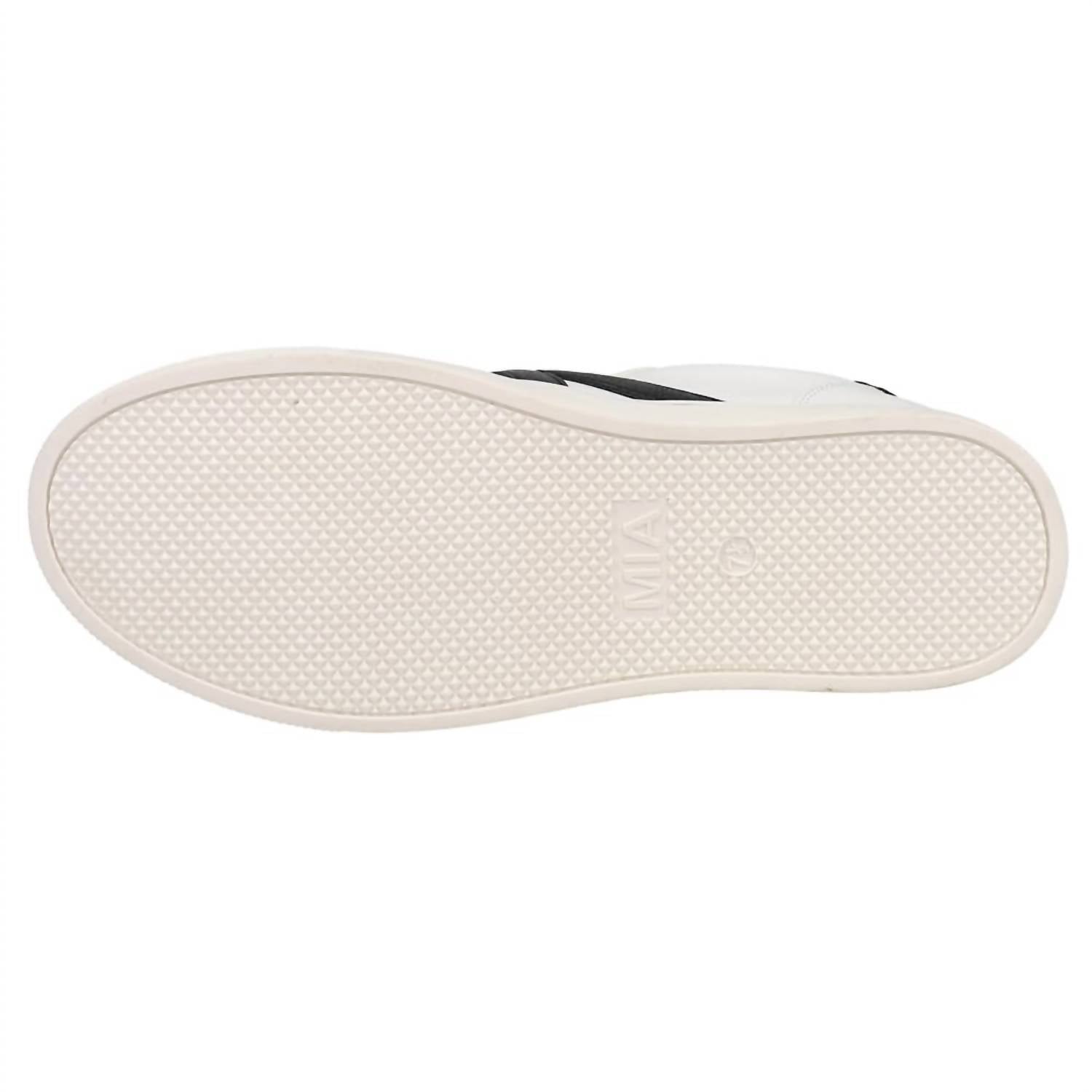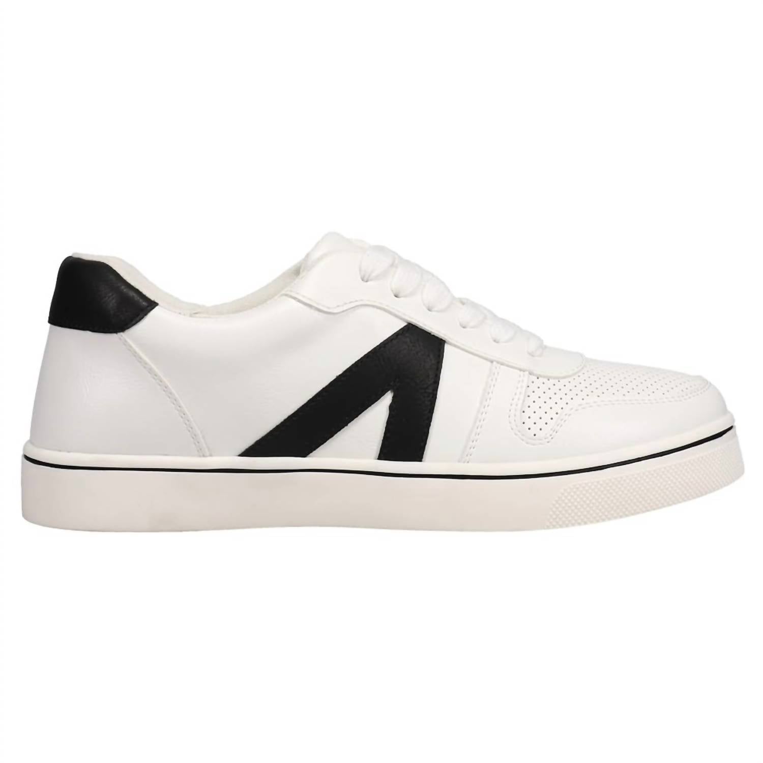 These sneakers feature a faux leather upper with a lace-up closure for a customizable and secure fit. They include a contoured footbed and a perforated toe for added breathability.
