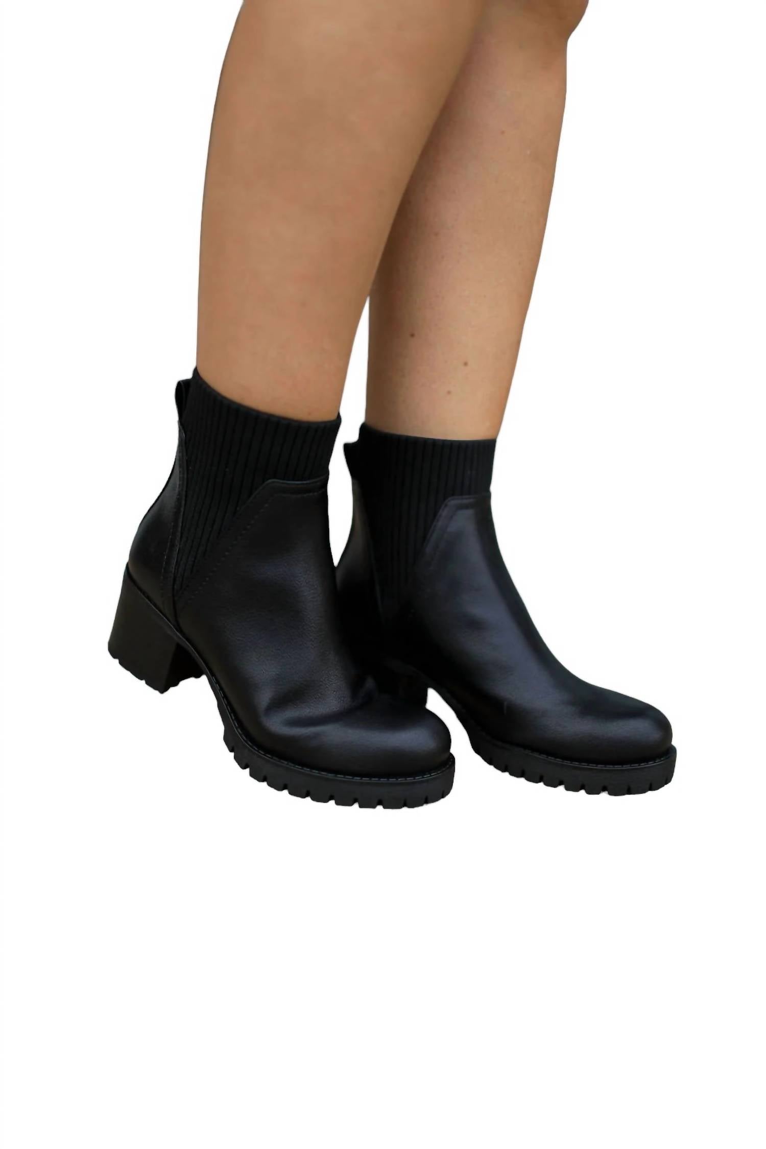 Say hello to the perfect, most versatile boot. The ankle height makes this style easily transition from day to night. Wear them with your favorite skinny jeans and tee for a more laid back look, or pair them with your favorite mini dress and jacket for a night out on the town.This Jasper Booties are crafted from sleek faux leather with a 2.5-inch block heel and a 6.5-inch shaft. The ribbed knit pull-on style ensures ease and comfort for all-day wear.