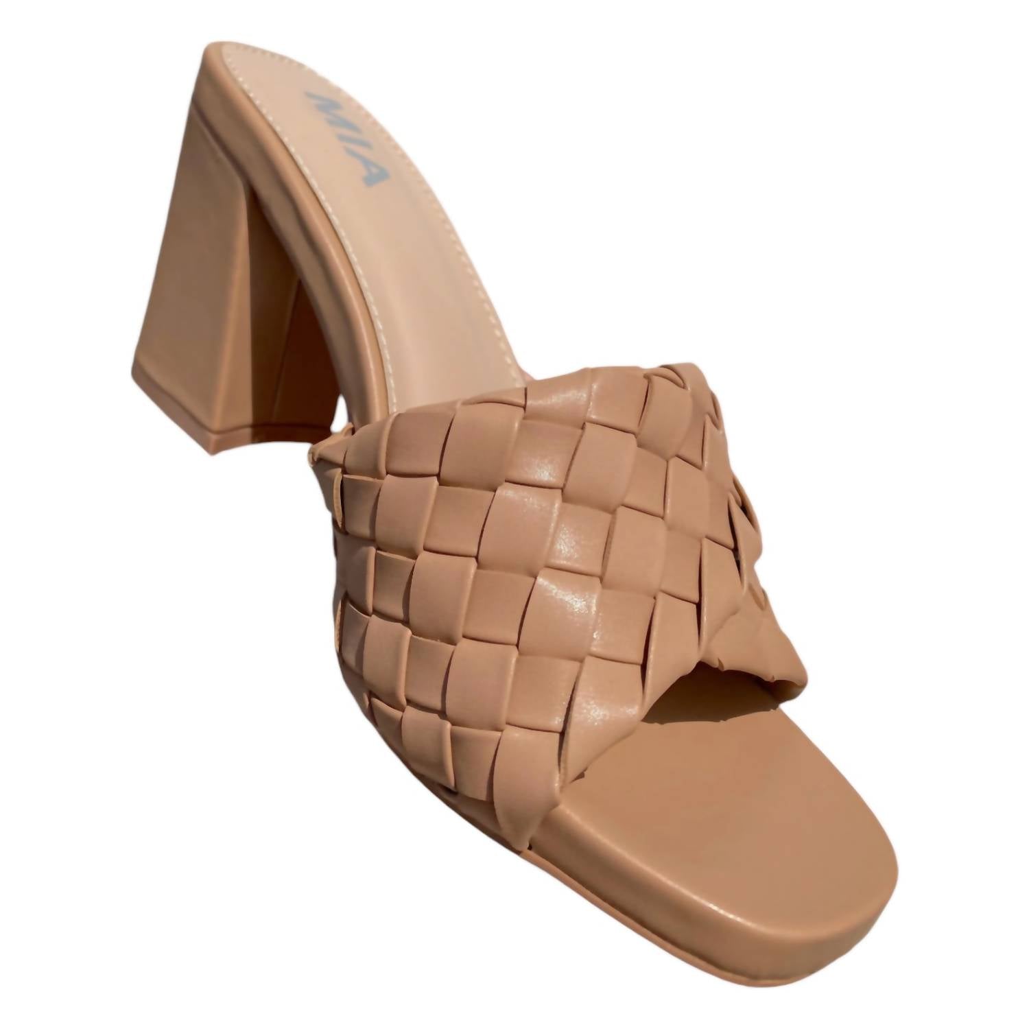 Pair these beauties with your favorite skinny jeans or dress for a night out on the town.Ultimate statement sandal. Featuring a meticulously crafted woven design in luxe burnish nappa polyurethane. 3-inch block heel offers both height and stability. Cushioned footbed ensures long-lasting comfort. Medium width and slide closure. Bring a sophisticated touch to any ensemble. Complete with an open square toe for a modern twist. Timeless elegance with a contemporary edge. Spot clean to maintain their pristine appearance and enjoy stepping out in confidence and comfort.