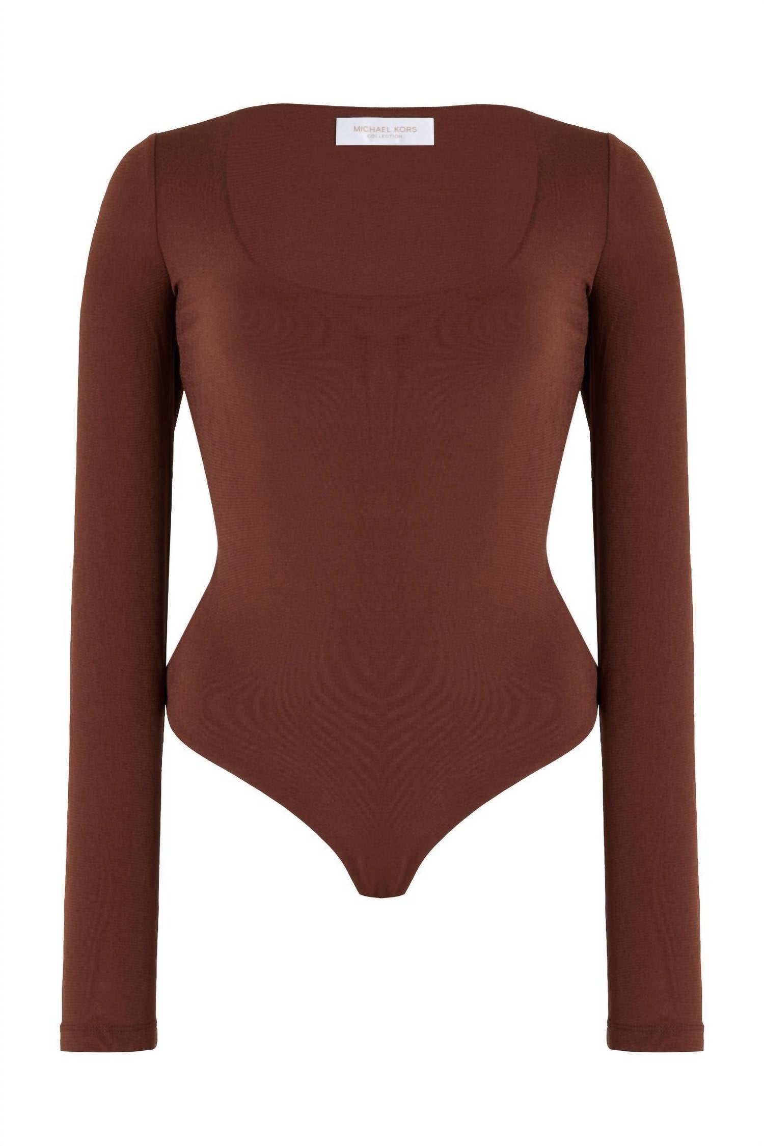 Form fitting and comfortable - this bodysuit check all of the boxes. Introducing the MICHAEL KORS Tissue Jersey U Bodysuit in a rich Nutmeg shade, an essential layering piece for the modern wardrobe. This short-sleeve bodysuit, crafted in Italy, features a smooth, stretch matte-jersey composition of 92% Viscose and 8% Elastane, offering a true-to-size, second-skin fit. Closure: Snap closure. Perfect for vacation getaways or for adding a touch of 90s fashion to your Thanksgiving look.