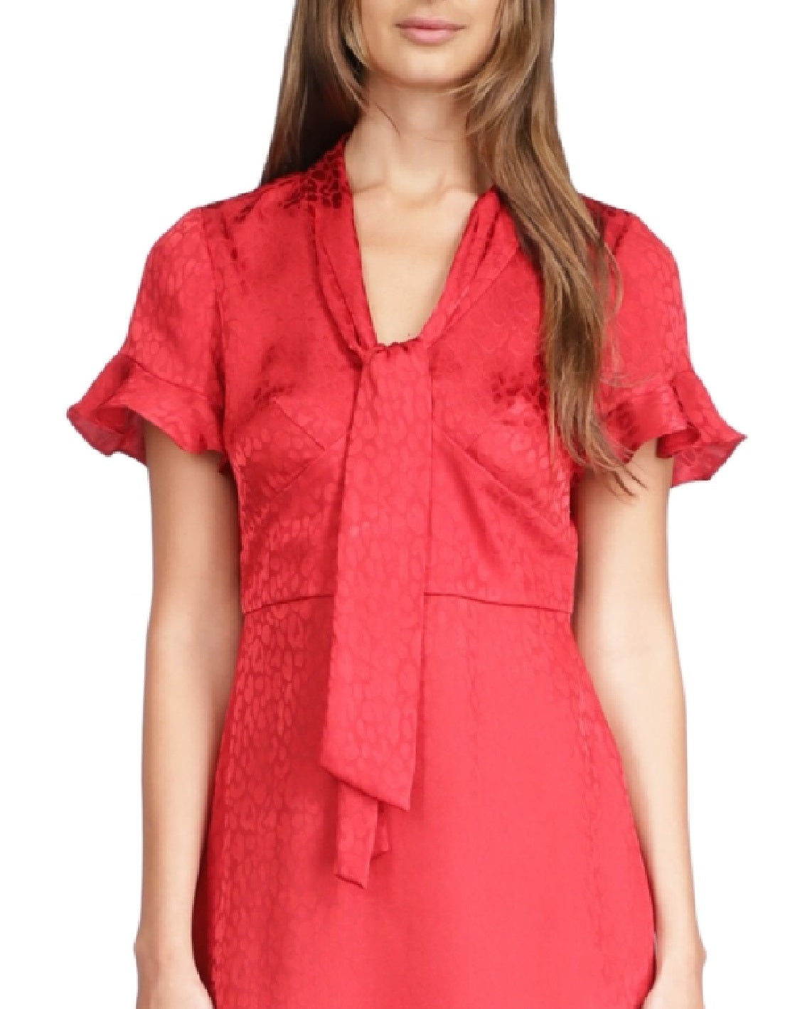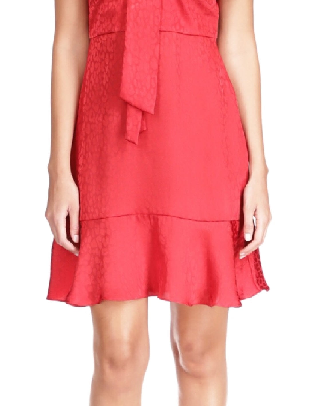 Michael Kors Women's Cheeta Plisse Tonal Print Tie Dress Red Size X-Large