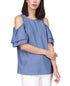 88 Michael Kors Blue Ruffled Off-The-Shoulder Top Size X-Small|DescriptionDesigned with an attached ruffle| this top features a playful off-the-shoulder silhouette.Ruffled off-the-shoulder necklineLong sleeves with elasticized cuffsPullover styleCotton/lyocellMachine washImported|About Us|We sell only 100% authentic clothing from new with tags to gently used. We have a 100% authentic or money back guarantee on every item we sell. Items are listed daily so make sure to put us on your favorite!|We have been in business for over 10 years selling tens of thousands of designer items. We strive to meet your designer needs at a quality price!|Payment