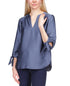 Michael Kors Women's Solid Satin Tie Top Blue Size X-Large