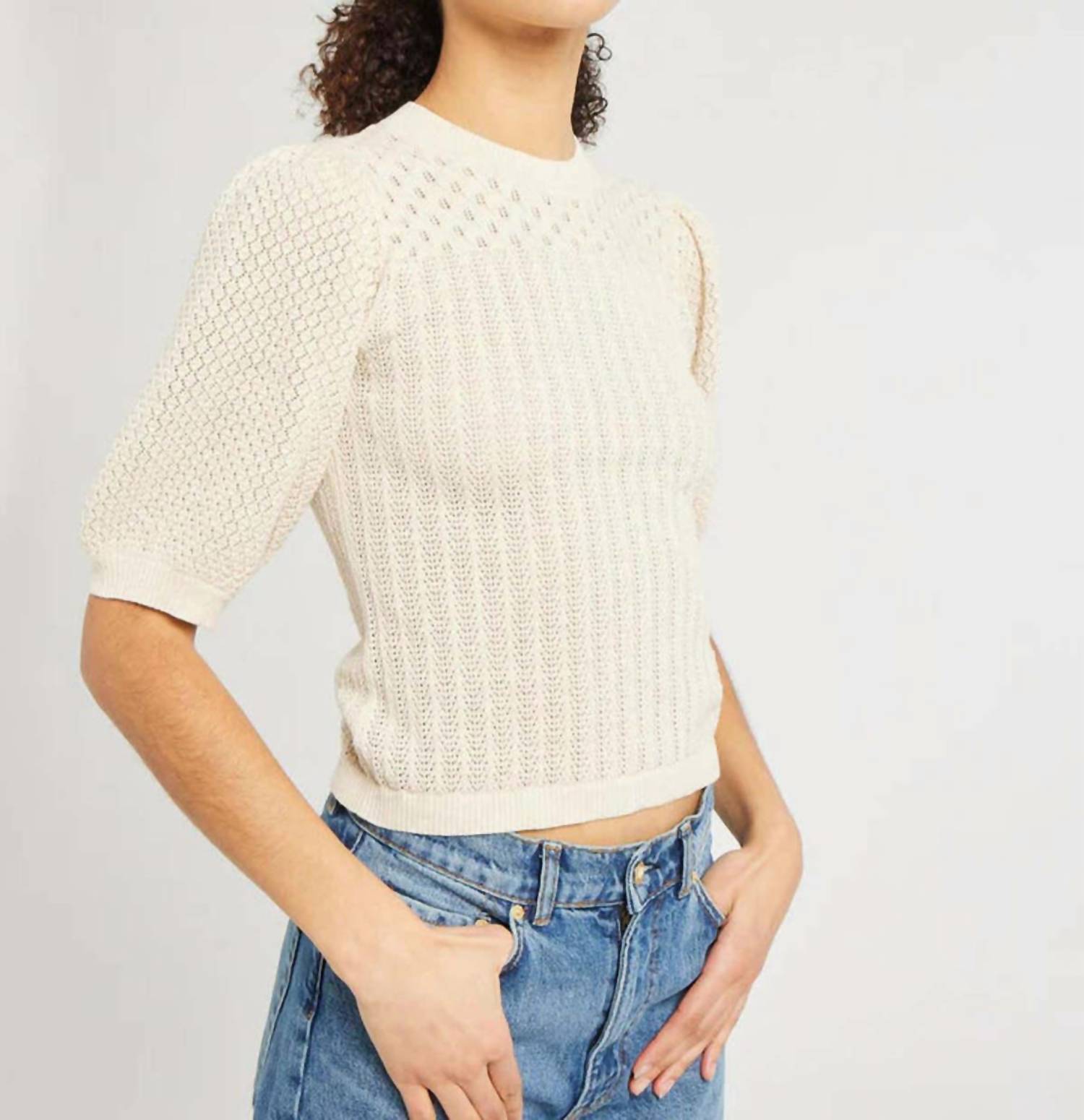 Experience the perfect blend of comfort and style with this trendy crew neck sweater, designed to effortlessly elevate your wardrobe. Pair it with your favorite denim and loafers for the perfect look. A darling knit to add to your fall rotation. This half sleeve top features a crew neckline, hand crochet trim details, and a puff sleeve with just the right amount of volume. - 100% Cotton - Made in Peru - Fit runs true to size